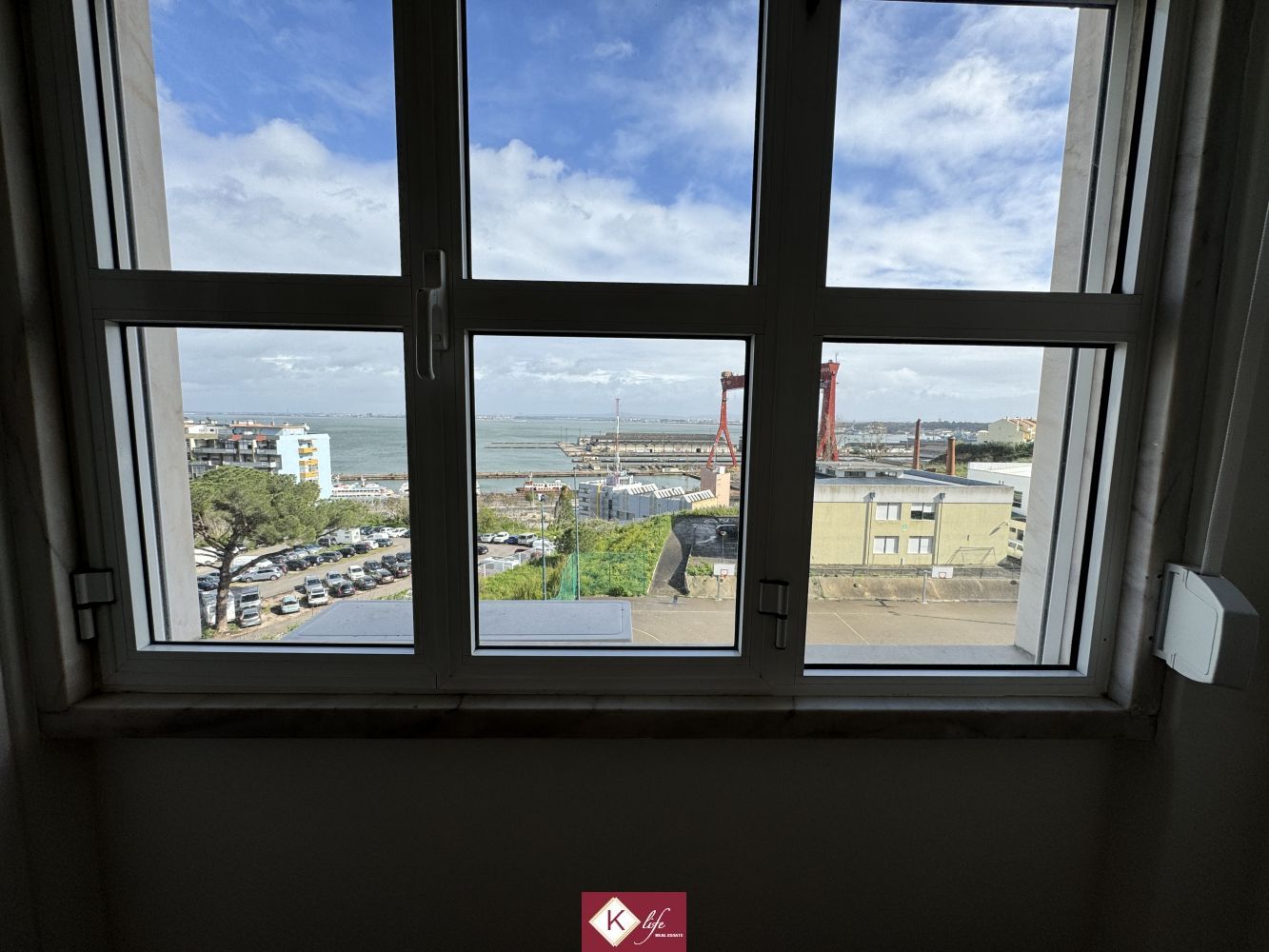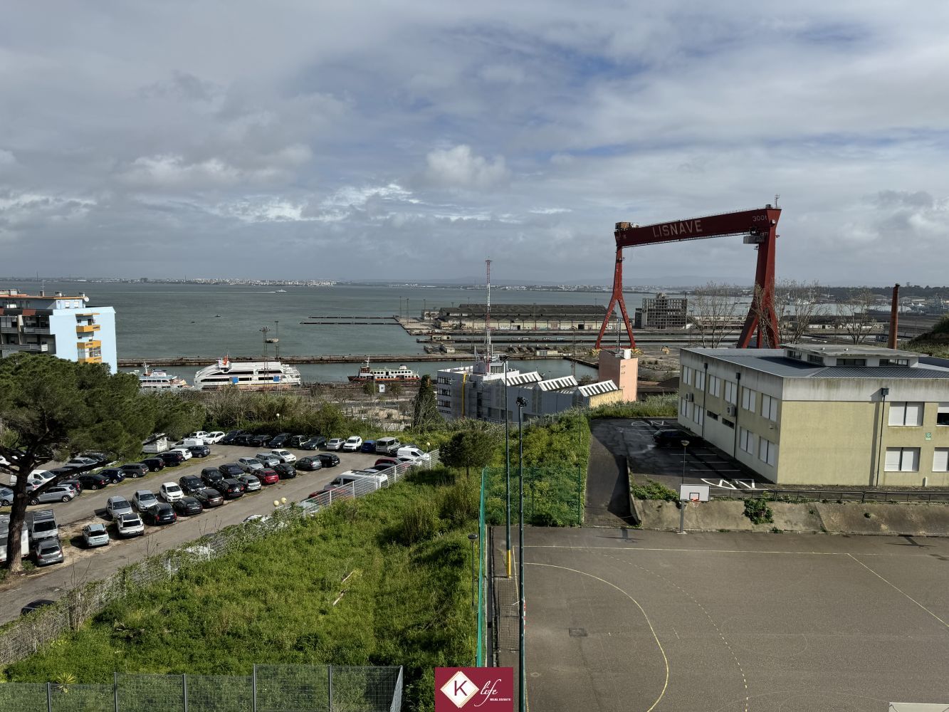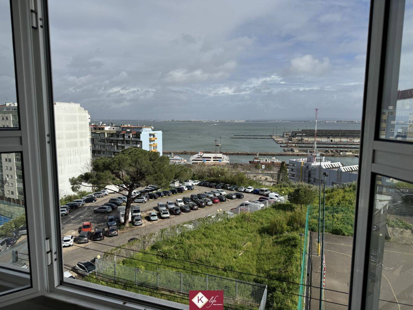 Apartamento T3, em bom estado para arrendamento, com vista rio nas duas frentes, 2 casas de banho, 3 quartos, prédio com 2 elevadores. 1 suite com casa de banho remodelada, 2 quartos com 1 casa de banho social, 1 sala, cozinha e 2 hall's. Varanda fechada com 16m2 toda em vidro. Está mobilado de acordo com as fotografias, cozinha totalmente equipada. Localiza-se na Av. 25 de Abril de 1974 nr 51, 7º drt - a 700m do barco Transtejo, metro e autocarro à porta de casa. Condições: contrato máximo de 1 ano, podendo ser celebrado novo contrato posteriormente. Rendas: 1 mês de renda adiantada + 2 meses de caução Documentação: Cartão de Cidadão (Identificação), IRS e comprovativo de liquidação do último ano disponível, 3 últimos recibos de vencimento, contracto de trabalho e /ou carta de entidade patronal. Disponível a partir de 1 de maio