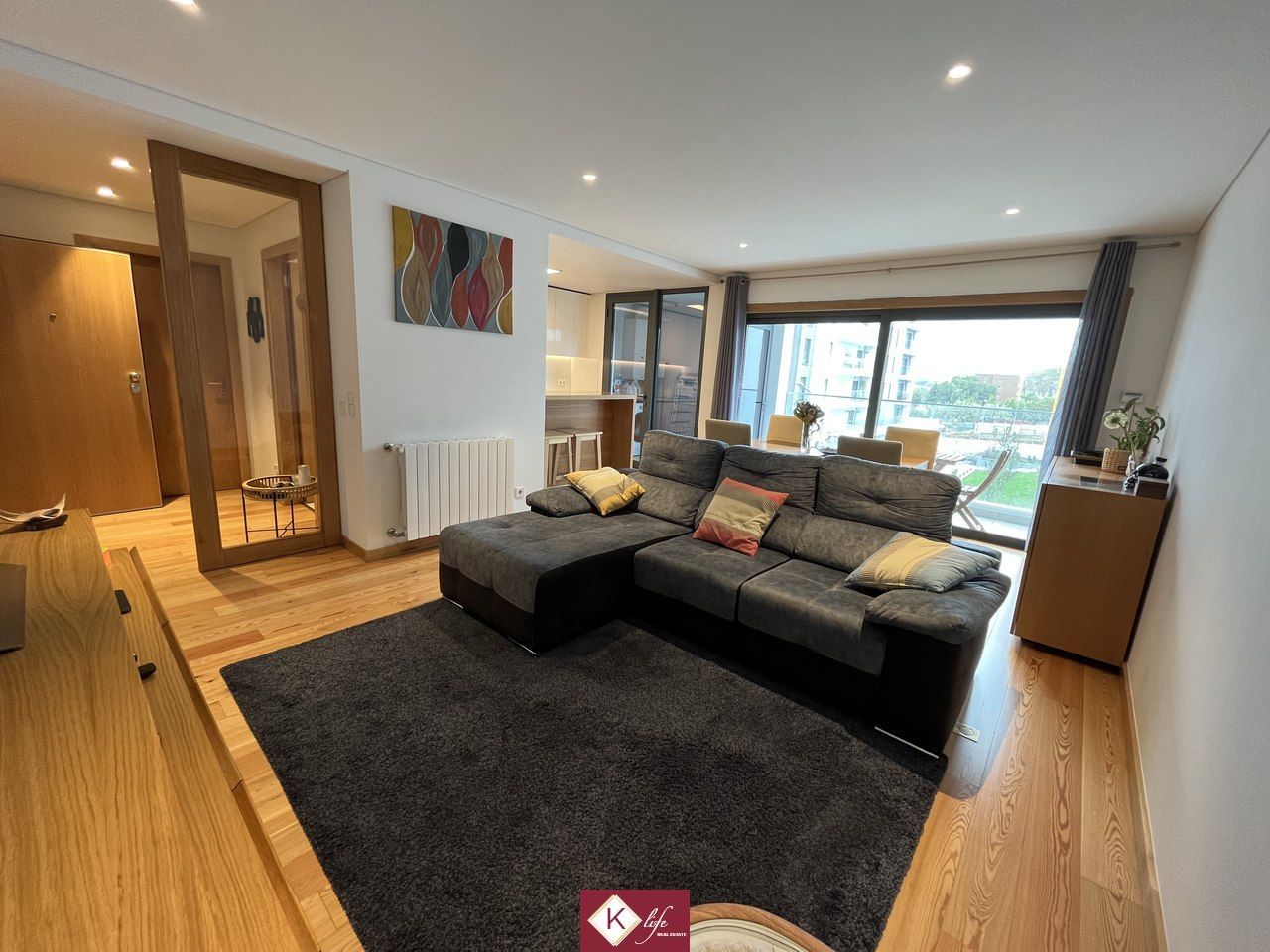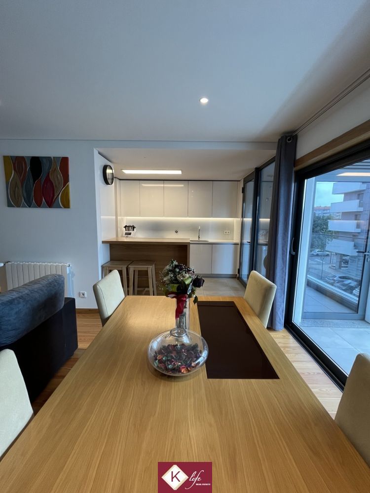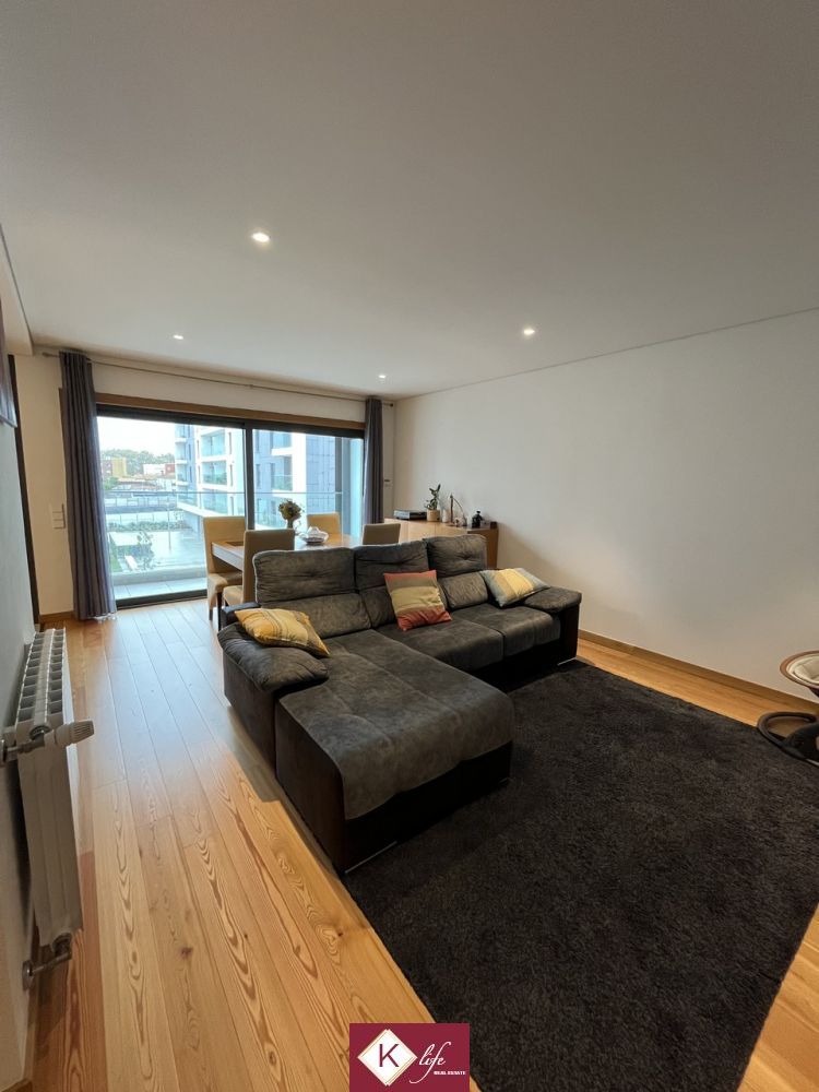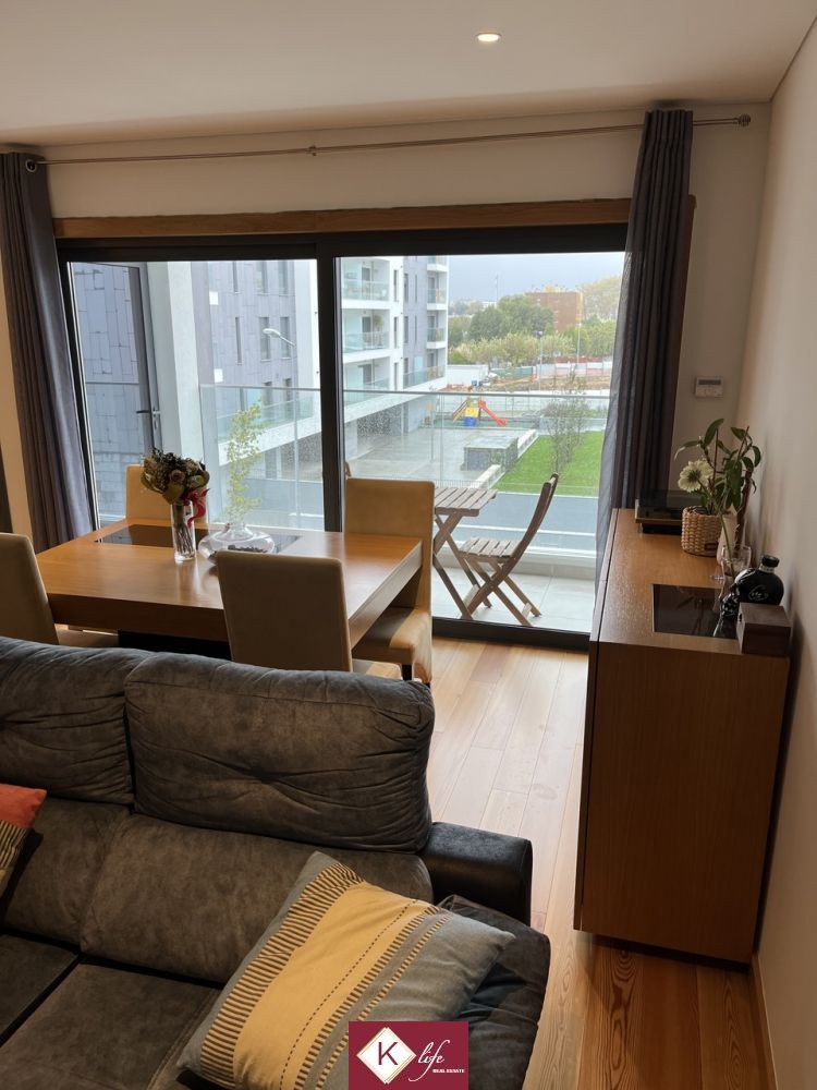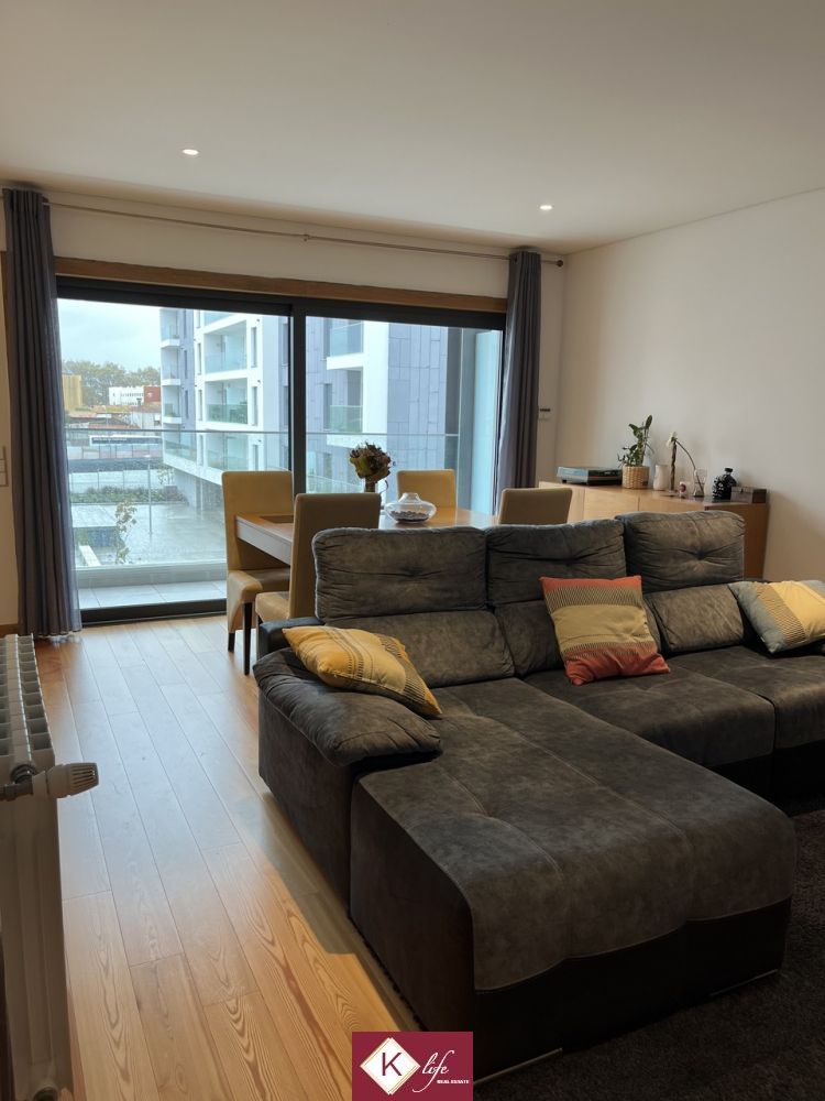 Apartamento no empreendimento recente (2018) Paços da Prelada de arquitetura contemporânea, localizado em zona premium de Ramalde. Empreendimento de destaque e de renome na cidade do Porto, permite ter muita qualidade de vida com extremo conforto, quer no interior da habitação quer no espaço exterior e envolvente. Excelentes acessos à Circunvalação, VCI e metro de Ramalde, conta com espaços exteriores verdes e amplos. O edificio foi construido de forma a pensar na sustentabilidade e eficiência, aproveitando a luz solar para aquecimentos das águas com recurso a painéis solares e para gerar energia através de painéis fotovoltaicos; O apartamento possui lugar de garagem (incluido no preço) com dimensão para 1 viatura + arrumos; O apartamento encontra-se distribuído da seguinte forma: - Hall central com acesso direto à cozinha, sala e espaço reservado dos quartos; - sala em open space com a cozinha e acesso direto à varanda com portas de correr; - cozinha equipada com eletrodomésticos de marca Bosh, bancada em Silestone, placa de indução e móveis lacados a branco; - espaço reservado dos quartos com 1 suite, 1 quarto, 2 wc (um sendo suite), diversos roupeiros embutidos com luzes interiores para maior conforto; - lavandaria com acesso à varanda; Possui ainda: - aquecimento central com radiadores a água ligados a uma caldeira a gás e aos paineis solares para aproveitamento da luz solar para aquecimento da água; - paineis fotovoltaicos; - caixilharia com vidro duplo para isolamento acustico e térmico; - estores com corte térmico elétricos; O prédio conta ainda com dois elevadores, sistema de ventilação para recirculação do ar, sala de reuniões do condomínio e espaço exterior comum para uso geral. Encontra-se ainda em periodo de garantia que tem sido tivada em casos pontuais de correção de pequenos aspetos, sempre com excelente profissionalismo por parte do construtor. A informação disponibilizada, ainda que precisa, não dispensa a sua confirmação nem pode ser considerada vinculativa