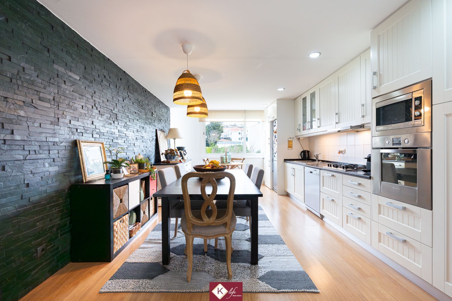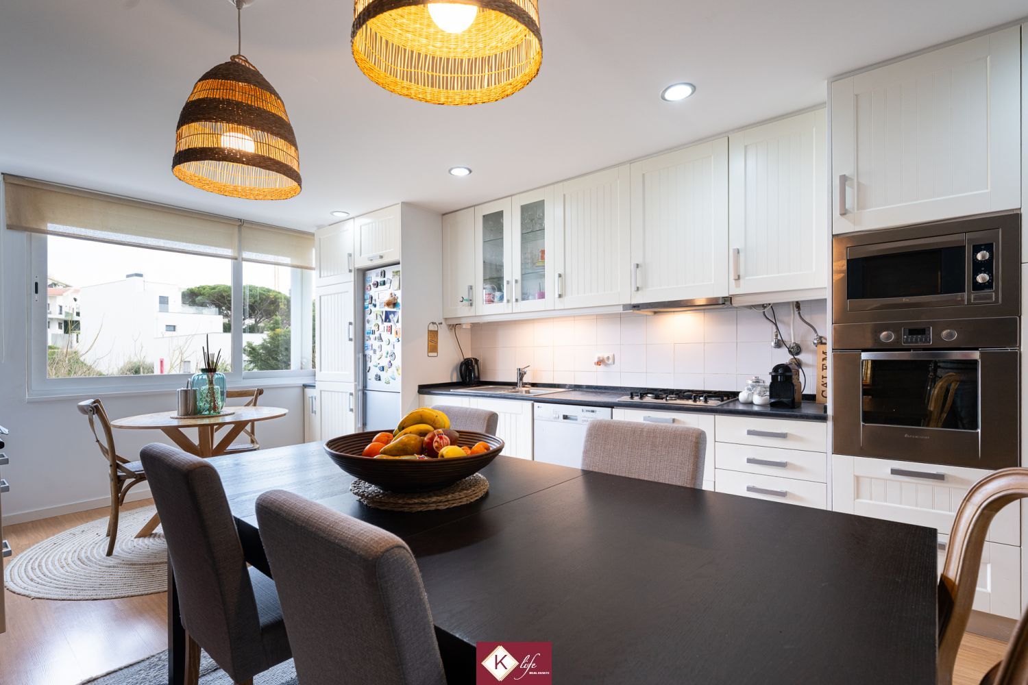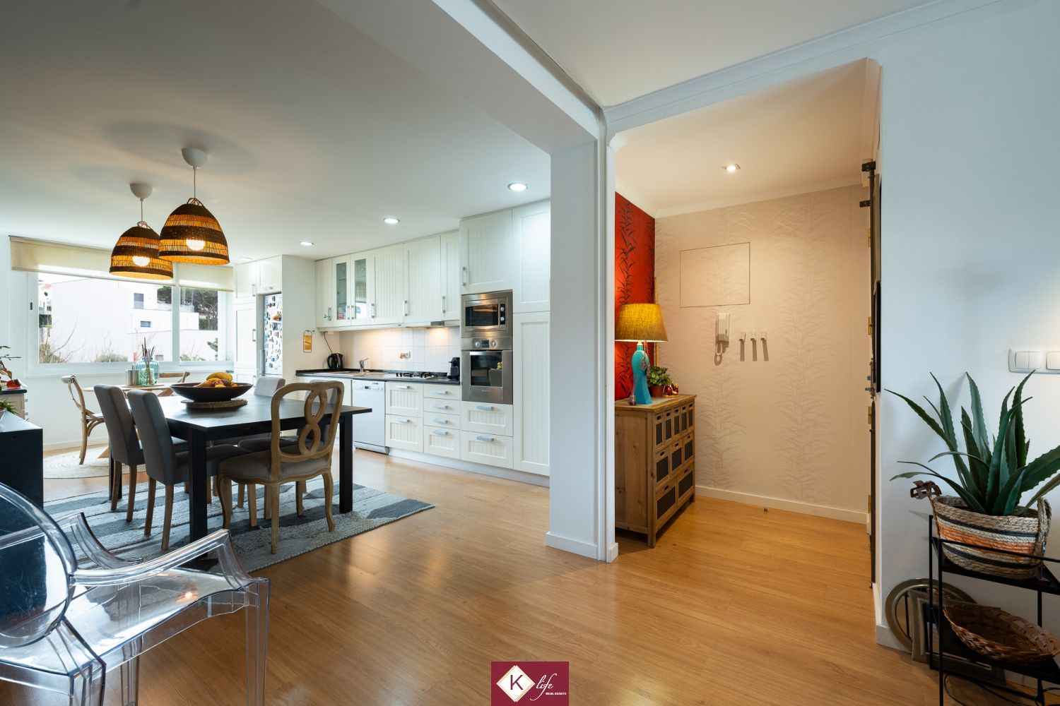 A 900m da praia de São Pedro do Estoril, Remodelado. Com o padrão KLIFE imobiliária, apresentamos este apartamento T3, com varandas e garagem box, em São Pedro do Estoril. Esta propriedade foi totalmente remodelada em 2022. A zona privativa dos quartos está separada da zona social, permitindo um conforto e descanso absoluto. 50 m2 de sala em open space com cozinha, onde uma porta de correr única com calha superior permite efetuar a sua separação em caso de necessidade. Recuperador de calor na sala. 3 quartos com roupeiros, um deles com uma varanda agradável; Garagem box com 20m2, permitindo 1 viatura e arrumos; O prédio apresenta boa qualidade de construção. A informação disponibilizada, ainda que precisa, não dispensa a sua confirmação nem pode ser considerada vinculativa.