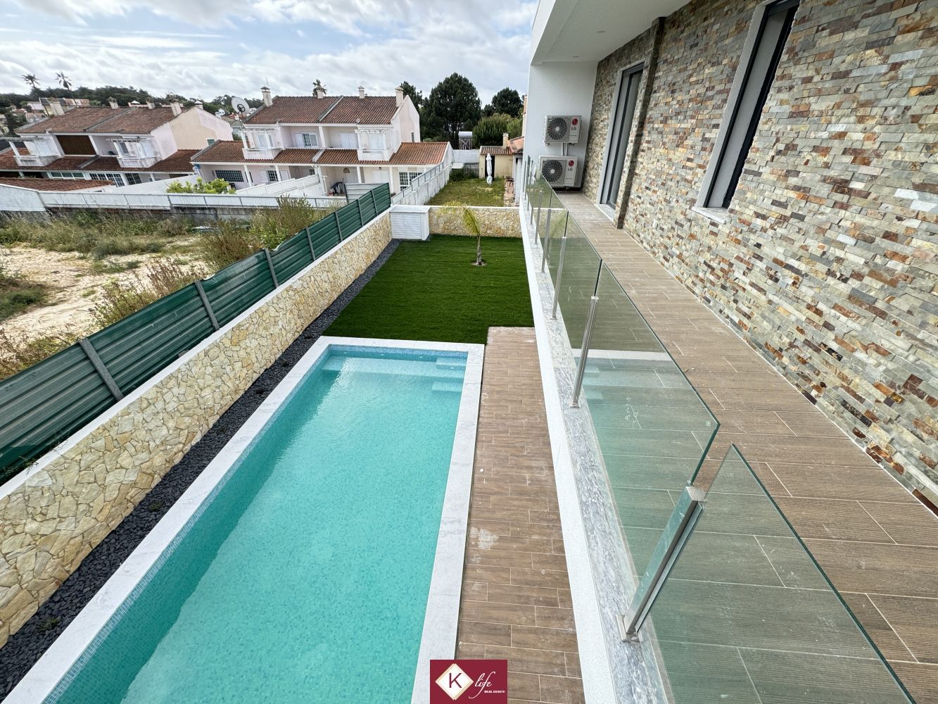 Com o padrão KLIFE imobiliária, apresentamos Moradia em zona nobre da Marisol/Aroeira, inserida em lote de 500m2, finalizada e pronta a escriturar. Possui 175m2 de construção, orientação Nascente/Poente/Sul, desenvolvidos da seguinte forma: - piso 0: cozinha, sala de jantar e sala de estar em open space com cerca de 60m2, com janelas grandes para entrada de luz franca e virada para o alpendre e piscina, wc social com duche, quarto, roupeiros, espaço para arrumos e garagem. - piso 1: 1 suite com walking closet, 2 quartos com roupeiros embutidos, lacados e forrados a linho, wc social Cozinha equipada totalmente com eletrodomésticos, aspiração central, ar condicionado, caixilharia de vidro duplo com corte térmico e acústico, estores elétricos porta blindada, portões automáticos, relva natural com sistema rega automático, churrasqueira e piscina. Escadas com degraus revestidos a silestone. Na Aroeira situa-se um dos mais glamorosos campos de Golf de Lisboa, perto da praia da Fonte da Telha, perto da mata Nacional dos Medos, A33 a 2 min de carro, escolas e comércio também disponíveis na zona. Colégio internacional Guadalupe - 2kms; Colégio Campo de Flores - 6,7kms A33 - 1,5kms Praia Fonte da Telha - 5kms Lisboa - 16kms Temos mais projetos e obras em carteira que também poderão ser do seu agrado, contacte-nos. A informação disponibilizada, ainda que precisa, não dispensa a sua confirmação nem pode ser considerada vinculativa