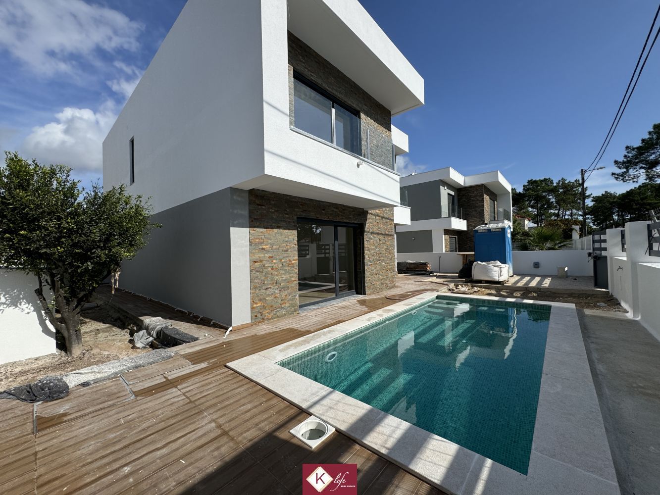 Com o padrão KLIFE imobiliária. Apresentamos Moradia em zona nobre da Aroeira, inserida em lote de 310m2 Possui 190m2 de construção, orientação Nascente/Poente/Sul, desenvolvidos da seguinte forma: - piso 0: cozinha, sala de jantar e sala de estar com janelas para entrada de luz franca e virada para a piscina, wc social com duche, quarto, espaço para arrumos e garagem. - piso 1: 1 suite de 18m2 com roupeiro, 2 quartos com roupeiros embutidos, lacados e forrados a linho, wc social. Cozinha equipada totalmente, aspiração central, ar condicionado, caixilharia de vidro duplo com corte térmico e acústico, estores elétricos porta blindada, portões automáticos, relva natural com sistema rega automático, churrasqueira e piscina. Na Aroeira situa-se um dos mais glamorosos campos de Golf de Lisboa, perto da praia da Fonte da Telha, perto da mata Nacional dos Medos, Na "K Life" somos especialistas em construção de moradias com várias obras realizadas e em curso. Efetuamos o acompanhamento de todas as fases da obra, assim como visita a obras atuais para ter uma melhor perceção da evolução do projeto e verificação de acabamentos. Também efetuamos consultoria dos materiais a usar, desenhos 3D de interiores e de mobiliário, assim como manufatura de mobiliário exclusivo. Temos mais projetos e obras em carteira que poderão ser do seu agrado, contacte-nos. A informação disponibilizada, ainda que precisa, não dispensa a sua confirmação nem pode ser considerada vinculativa
