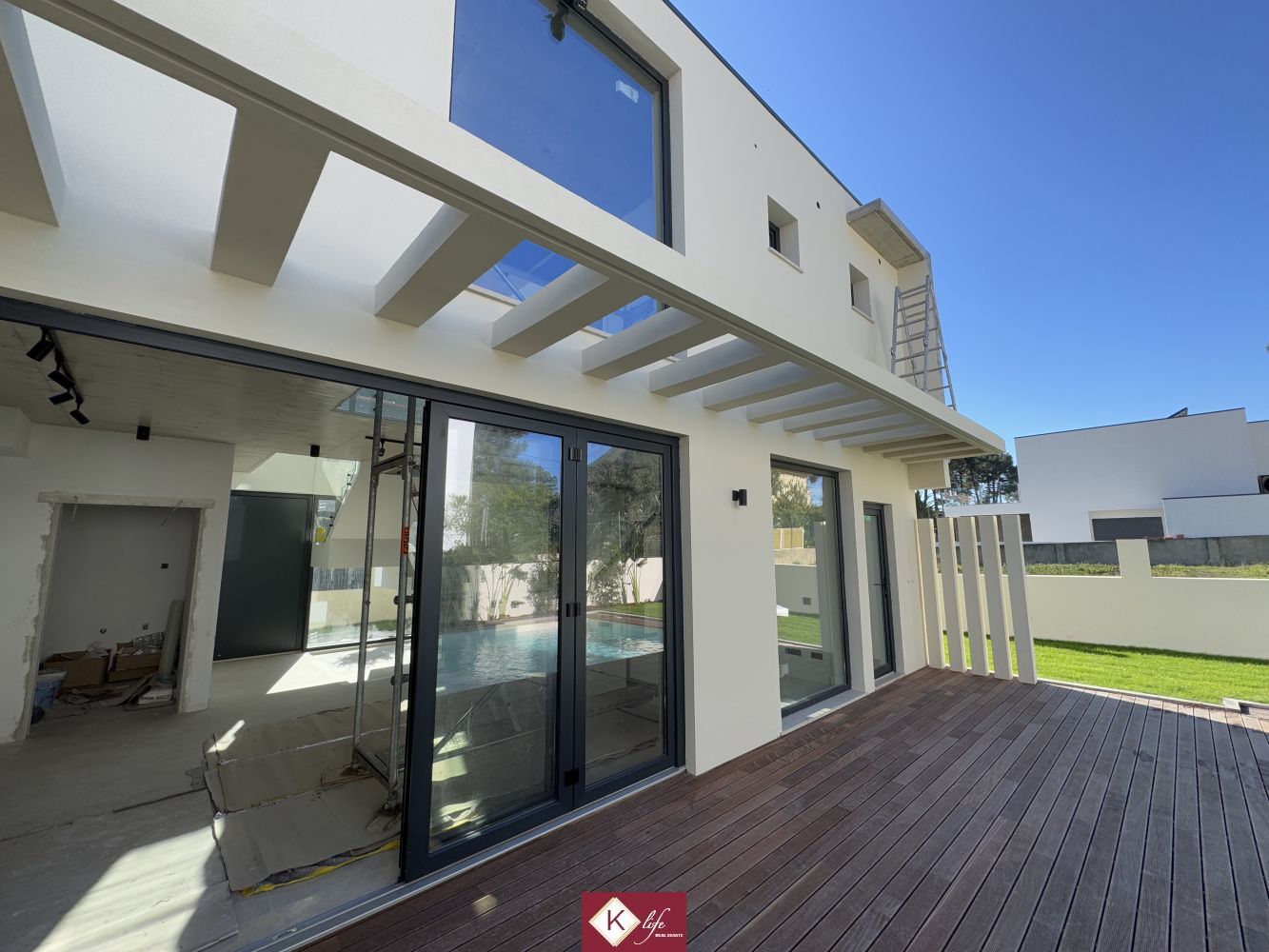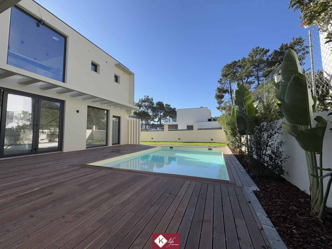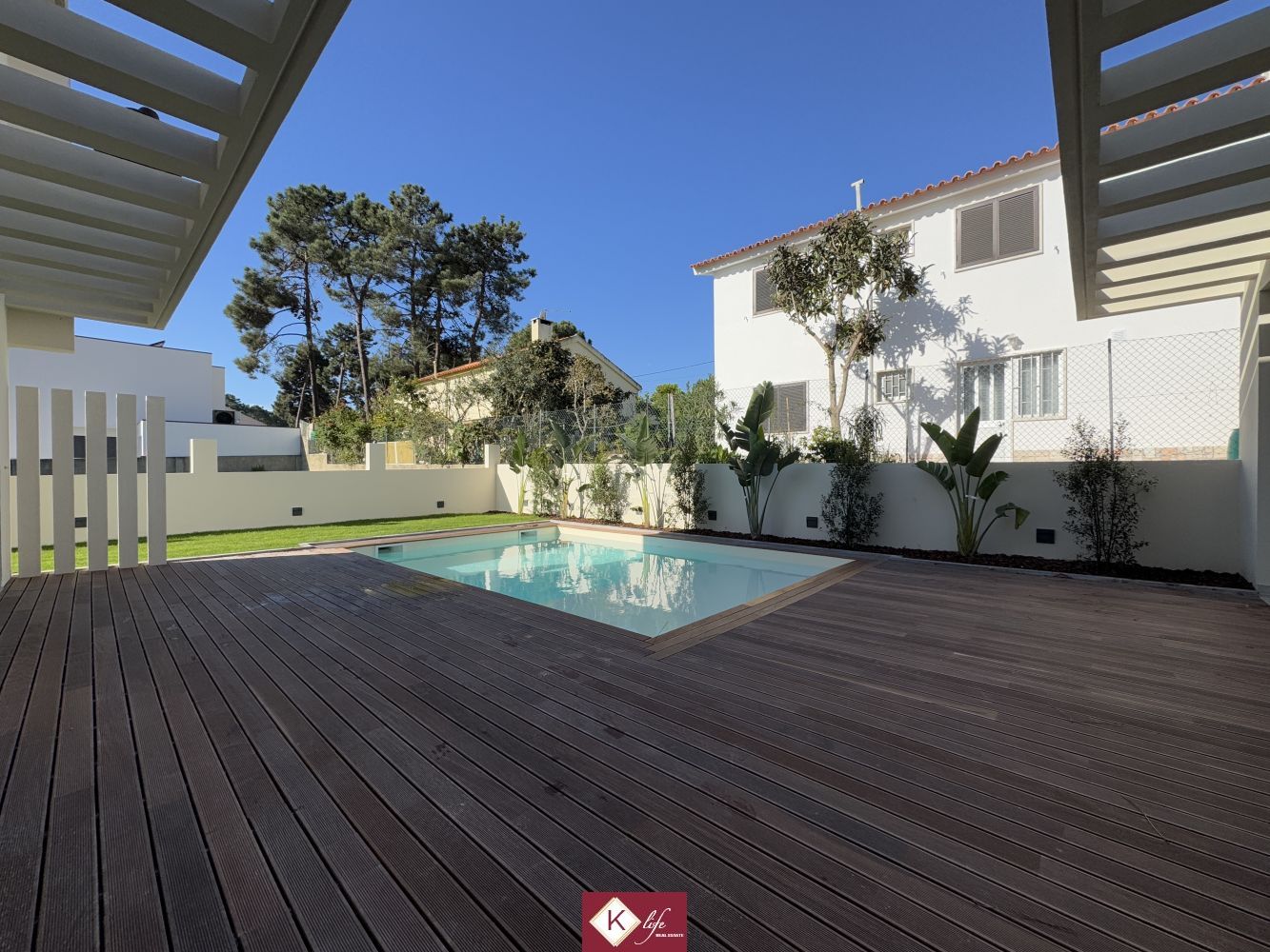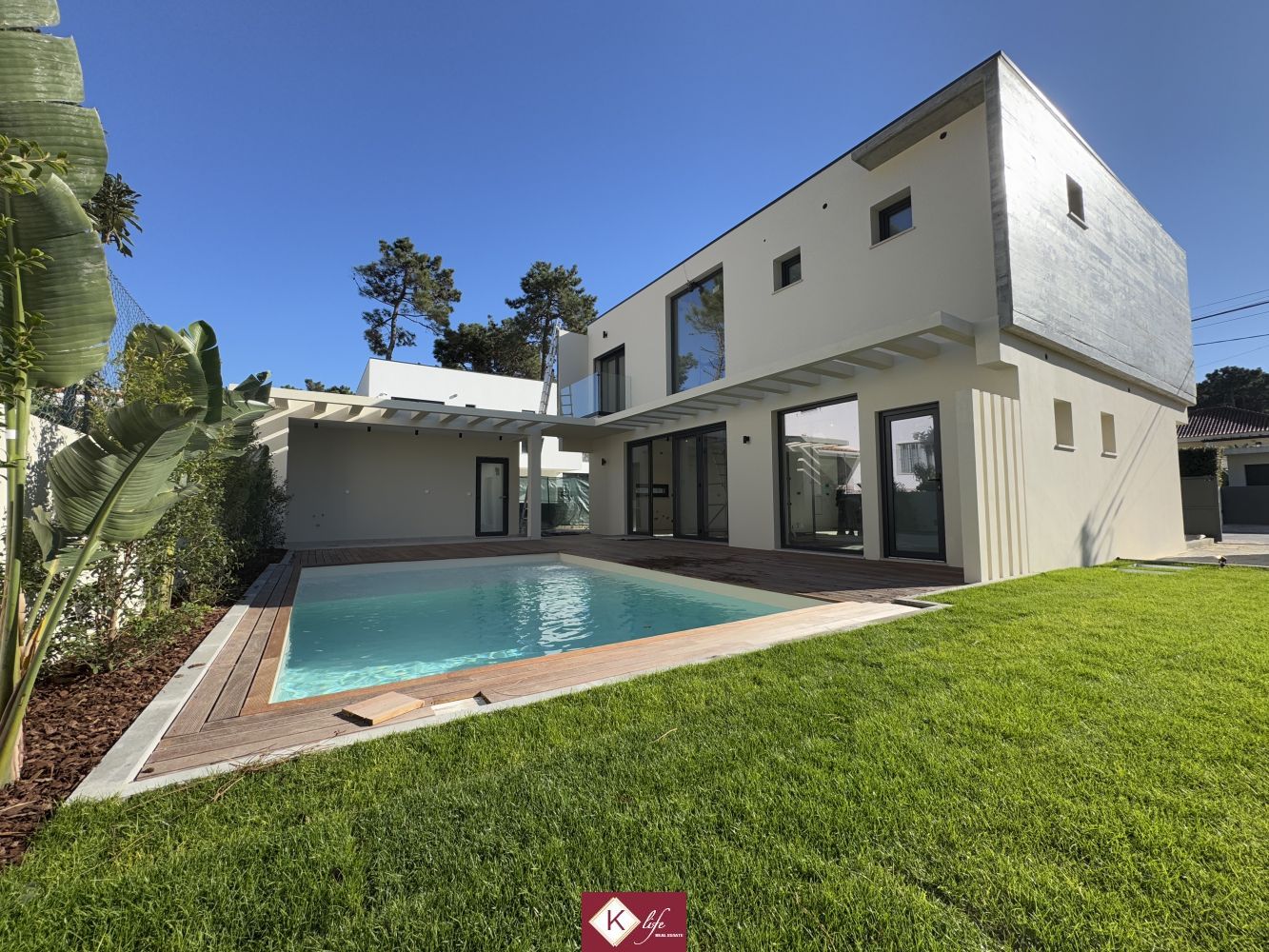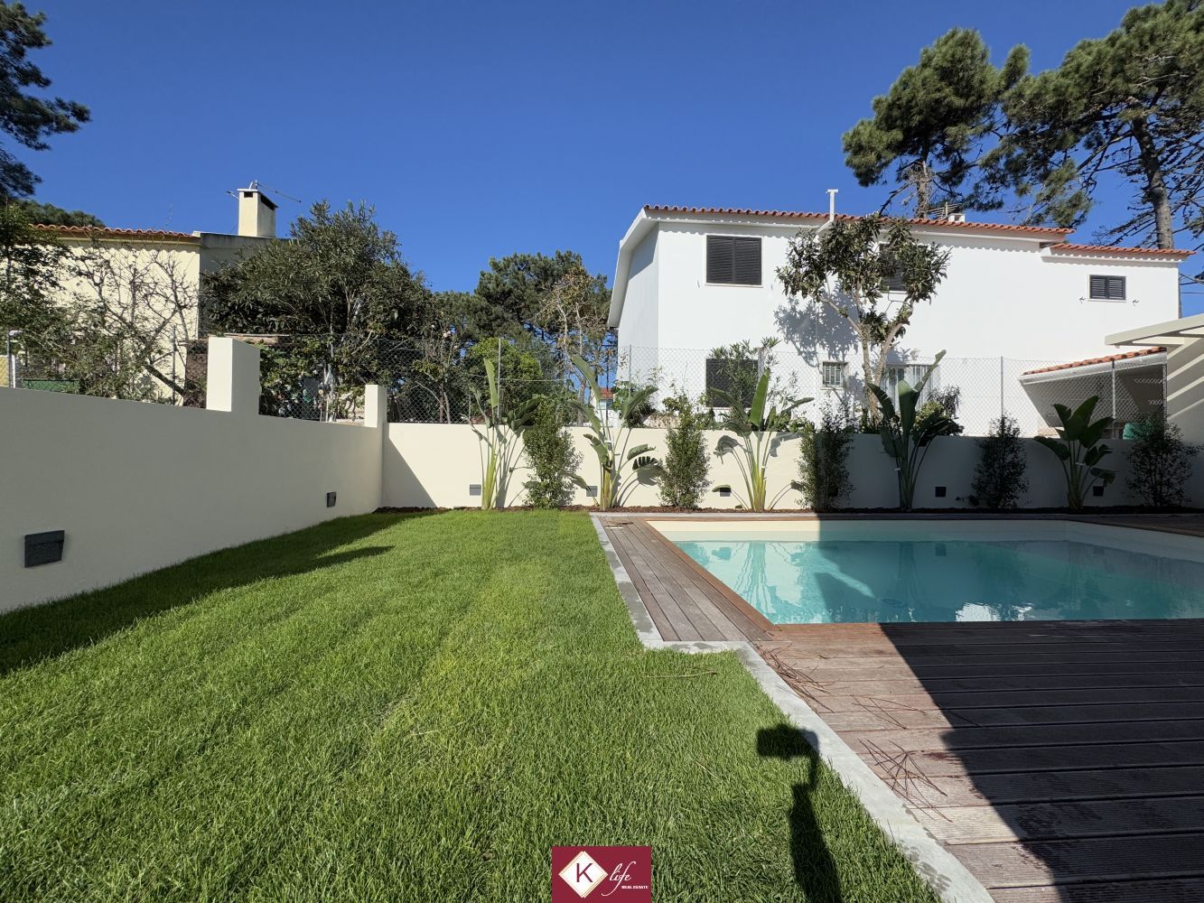 Com o padrão KLIFE imobiliária. Apresentamos Moradia em zona nobre da Aroeira, inserida em lote de 320m2. Possui 180m2 de construção, orientação Nascente/Poente/Sul, desenvolvidos da seguinte forma: - piso 0: cozinha, sala de jantar e sala de estar em open space com cerca de 45m2, com janelas grandes para entrada de luz franca e virada para o alpendre e piscina, wc social com duche, quarto, roupeiros, espaço para arrumos e garagem. - piso 1: 1 suite, 2 quartos com roupeiros embutidos, wc social., garagem e piscina. Cozinha equipada totalmente com eletrodomésticos, aspiração central, pré-instalação de ar condicionado, caixilharia de vidro duplo com corte térmico e acústico, estores elétricos porta blindada, portões automáticos, relva natural com sistema rega automático, churrasqueira e piscina. Na Aroeira situa-se um dos mais glamorosos campos de Golf de Lisboa, perto da praia da Fonte da Telha, perto da mata Nacional dos Medos, Na "K Life" somos especialistas em construção de moradias com várias obras realizadas e em curso. Efetuamos o acompanhamento de todas as fases da obra, assim como visita a obras atuais para ter uma melhor perceção da evolução do projeto e verificação de acabamentos. Também efetuamos consultoria dos materiais a usar, desenhos 3D de interiores e de mobiliário, assim como manufatura de mobiliário exclusivo. A informação disponibilizada, ainda que precisa, não dispensa a sua confirmação nem pode ser considerada vinculativa