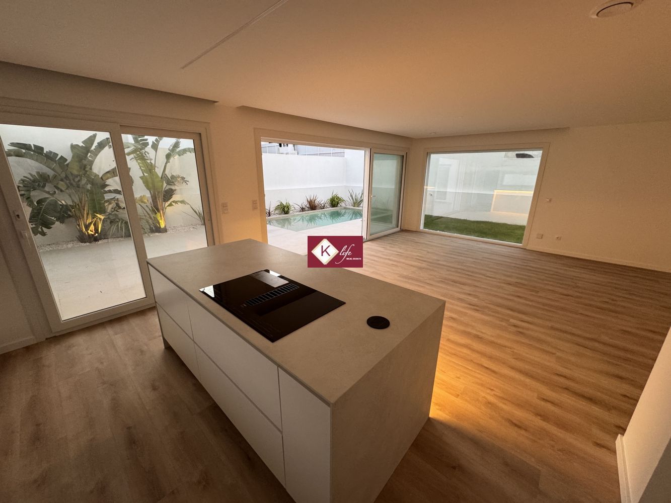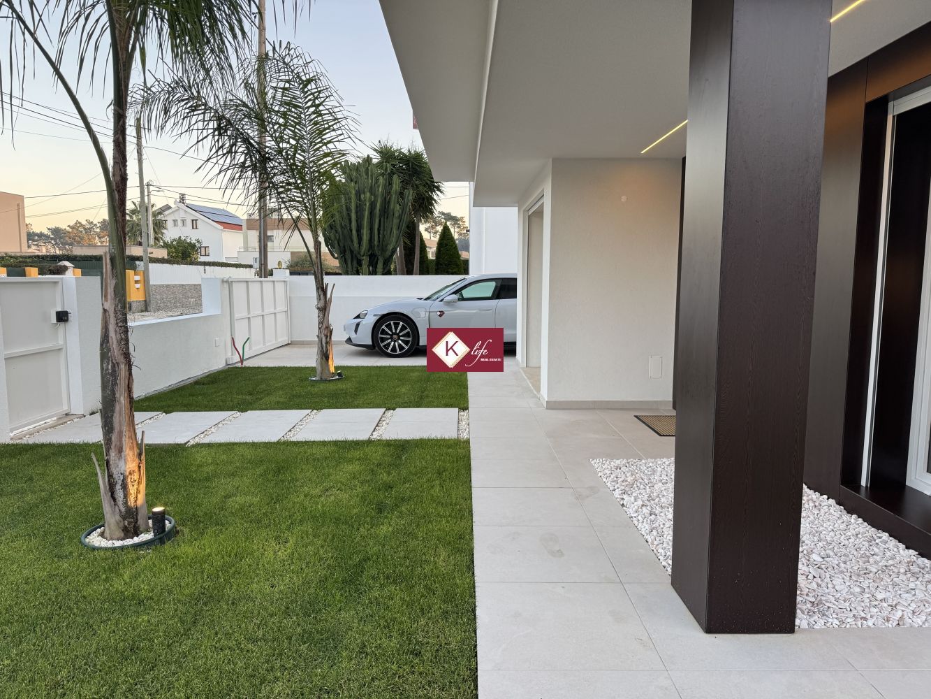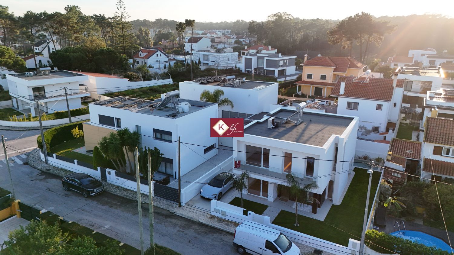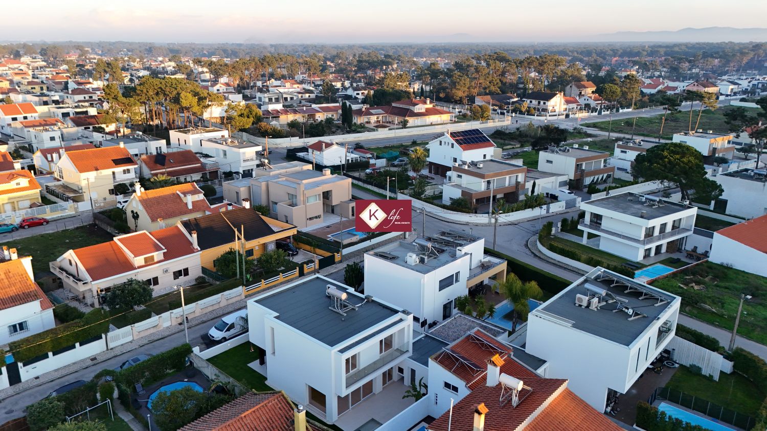 72, SENA VILLA | Aroeira. Com o padrão KLife Properties. Apresentamos Moradia em zona nobre da Aroeira, inserida em lote de 325m2, a apenas 1500m da Herdade da Aroeira (golfe) Possui 201m2 de construção, orientação Nascente/Poente/Sul, desenvolvidos da seguinte forma: - piso 0: cozinha, sala de jantar e sala de estar (open space com 55m2) com janelas grandes para entrada de luz franca e virada para o alpendre e piscina, wc social com duche, quarto e espaço para arrumos e garagem (20m2). - piso 1: 1 master suite (closet + casa de banho + quarto), 2 quartos (15m2 cada) com roupeiros embutidos, lacados e forrados a linho, wc social Equipamentos: - Cozinha equipada totalmente, bancadas dekton; - Ventilação mecânica controlada (VMC); - aspiração central; - ar condicionado completo; - caixilharia de vidro duplo com corte térmico e acústico; - estores elétricos, com botão geral na entrada da habitação; - porta blindada; - portões automáticos; - relva natural com sistema rega automática; - piscina 5x2.5m, tela texturada premium cor pedra natural travertino, regulador automático água, equipamento sal + Ph automático. Na Aroeira situa-se um dos mais glamorosos campos de Golf de Lisboa, perto da praia da Fonte da Telha, perto da mata Nacional dos Medos, A informação disponibilizada, ainda que precisa, não dispensa a sua confirmação nem pode ser considerada vinculativa