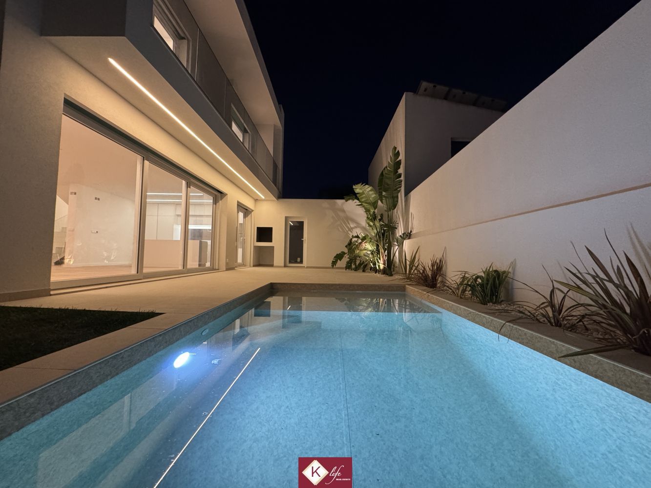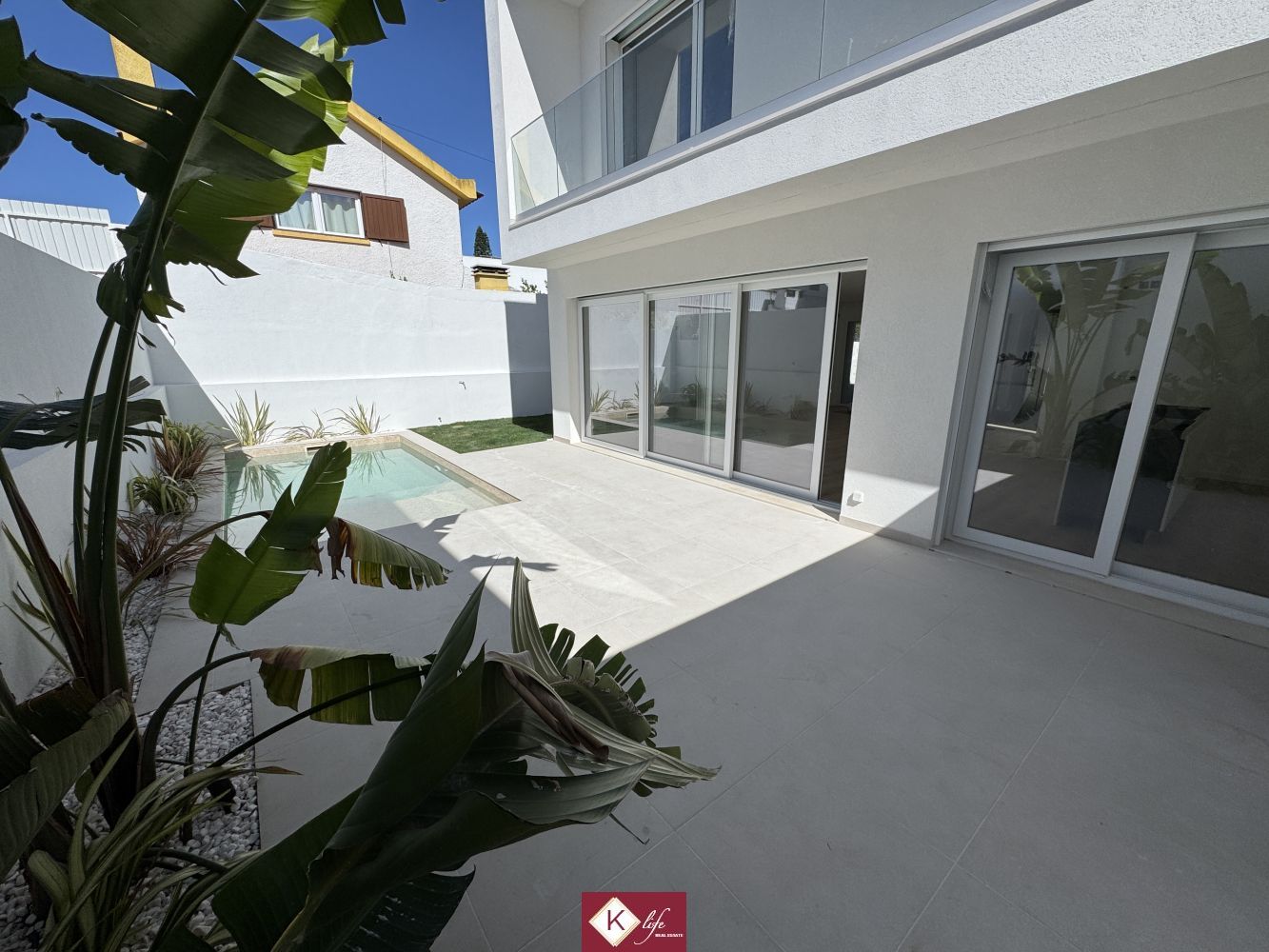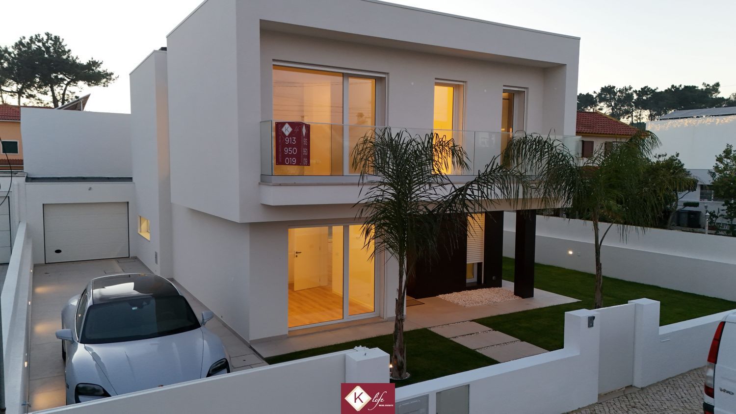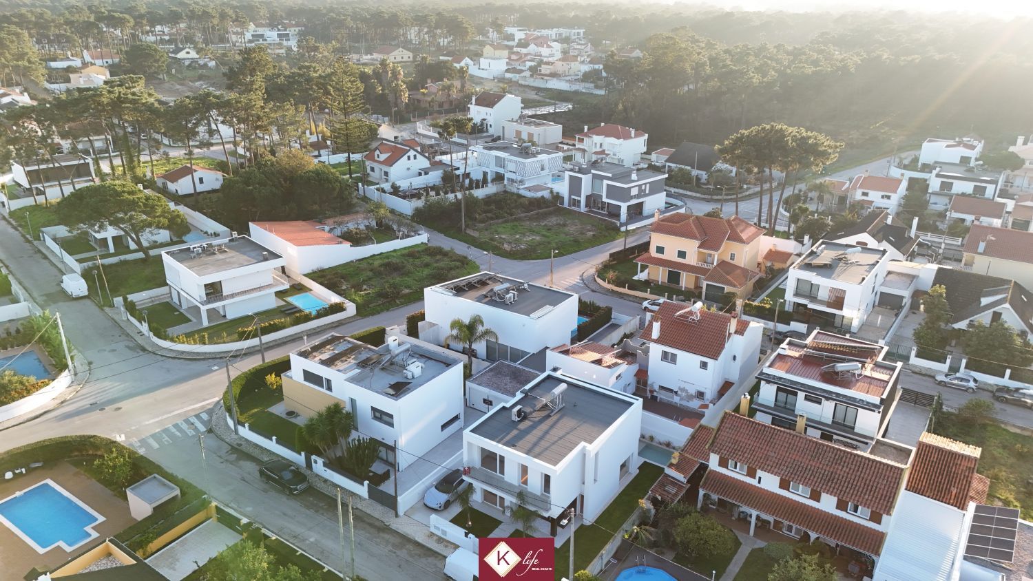 72, SENA VILLA | Aroeira. Com o padrão KLife Properties. Apresentamos Moradia em zona nobre da Aroeira, inserida em lote de 325m2, a apenas 1500m da Herdade da Aroeira (golfe) Possui 201m2 de construção, orientação Nascente/Poente/Sul, desenvolvidos da seguinte forma: - piso 0: cozinha, sala de jantar e sala de estar (open space com 55m2) com janelas grandes para entrada de luz franca e virada para o alpendre e piscina, wc social com duche, quarto e espaço para arrumos e garagem (20m2). - piso 1: 1 master suite (closet + casa de banho + quarto), 2 quartos (15m2 cada) com roupeiros embutidos, lacados e forrados a linho, wc social Equipamentos: - Cozinha equipada totalmente, bancadas dekton; - Ventilação mecânica controlada (VMC); - aspiração central; - ar condicionado completo; - caixilharia de vidro duplo com corte térmico e acústico; - estores elétricos, com botão geral na entrada da habitação; - porta blindada; - portões automáticos; - relva natural com sistema rega automática; - piscina 5x2.5m, tela texturada premium cor pedra natural travertino, regulador automático água, equipamento sal + Ph automático. Na Aroeira situa-se um dos mais glamorosos campos de Golf de Lisboa, perto da praia da Fonte da Telha, perto da mata Nacional dos Medos, A informação disponibilizada, ainda que precisa, não dispensa a sua confirmação nem pode ser considerada vinculativa