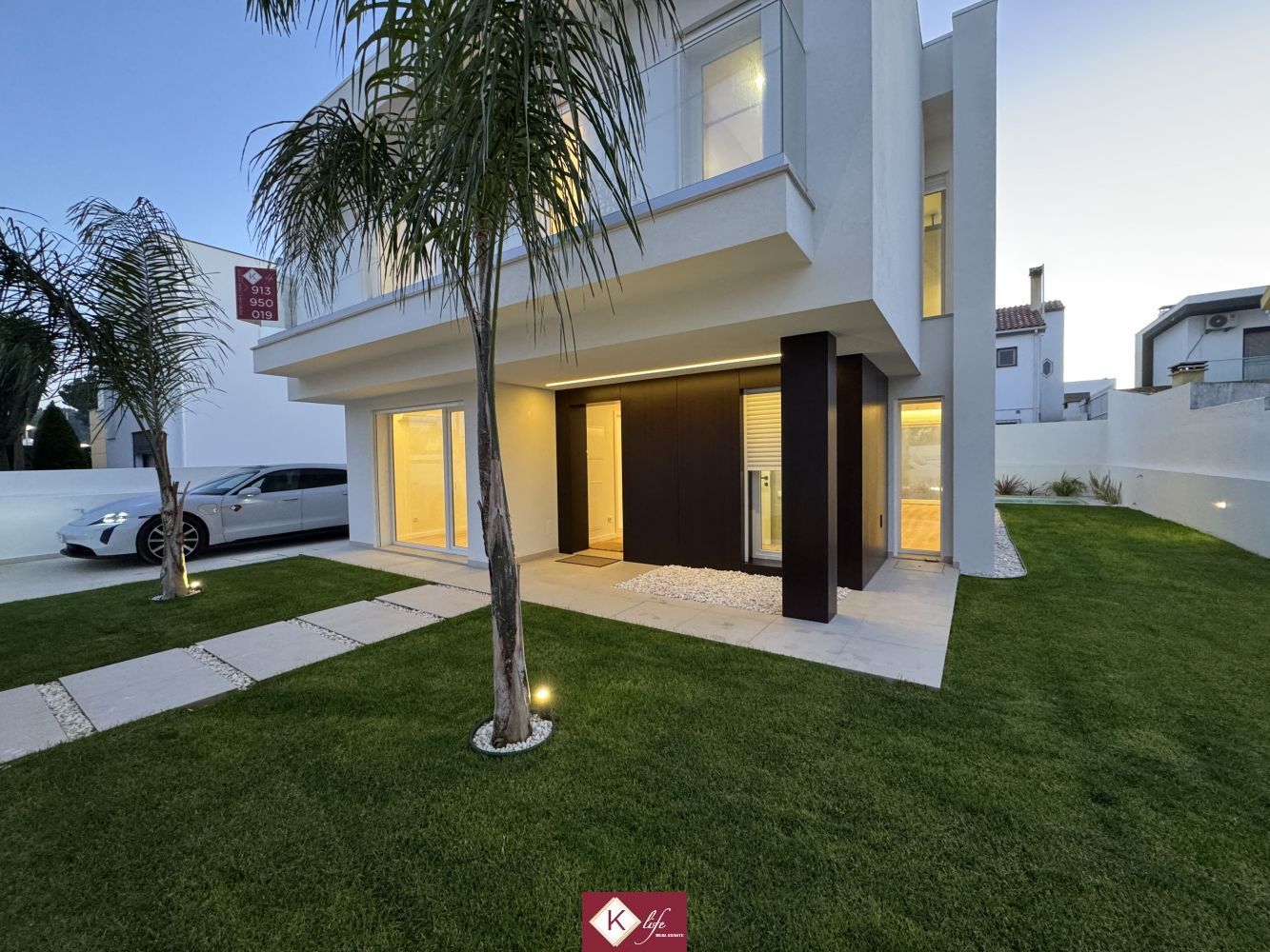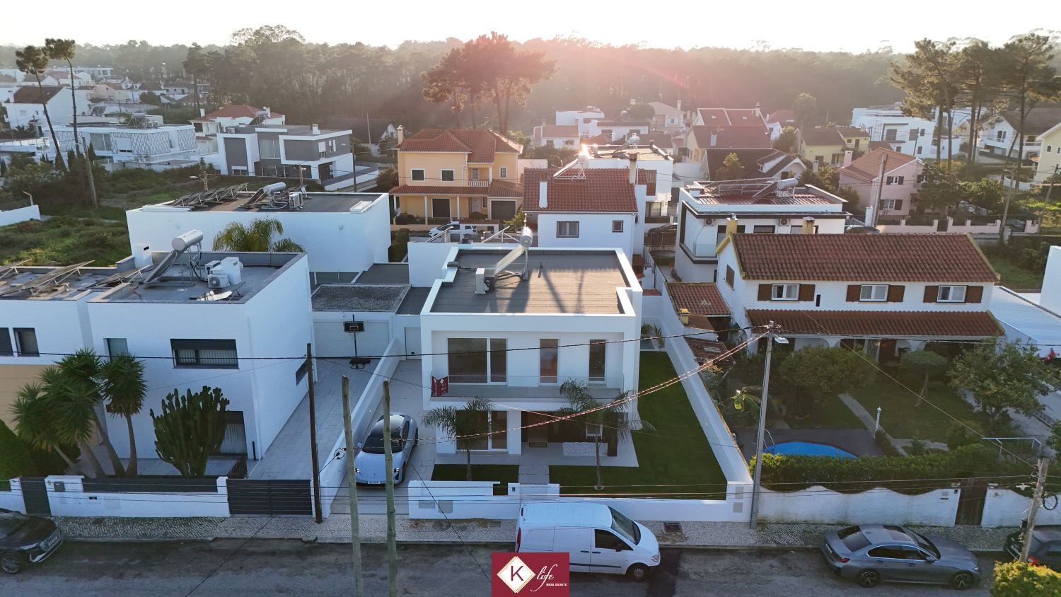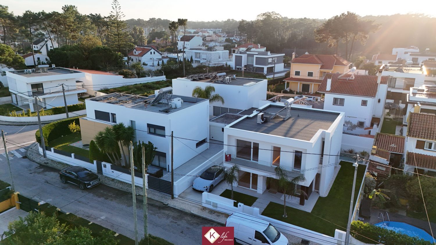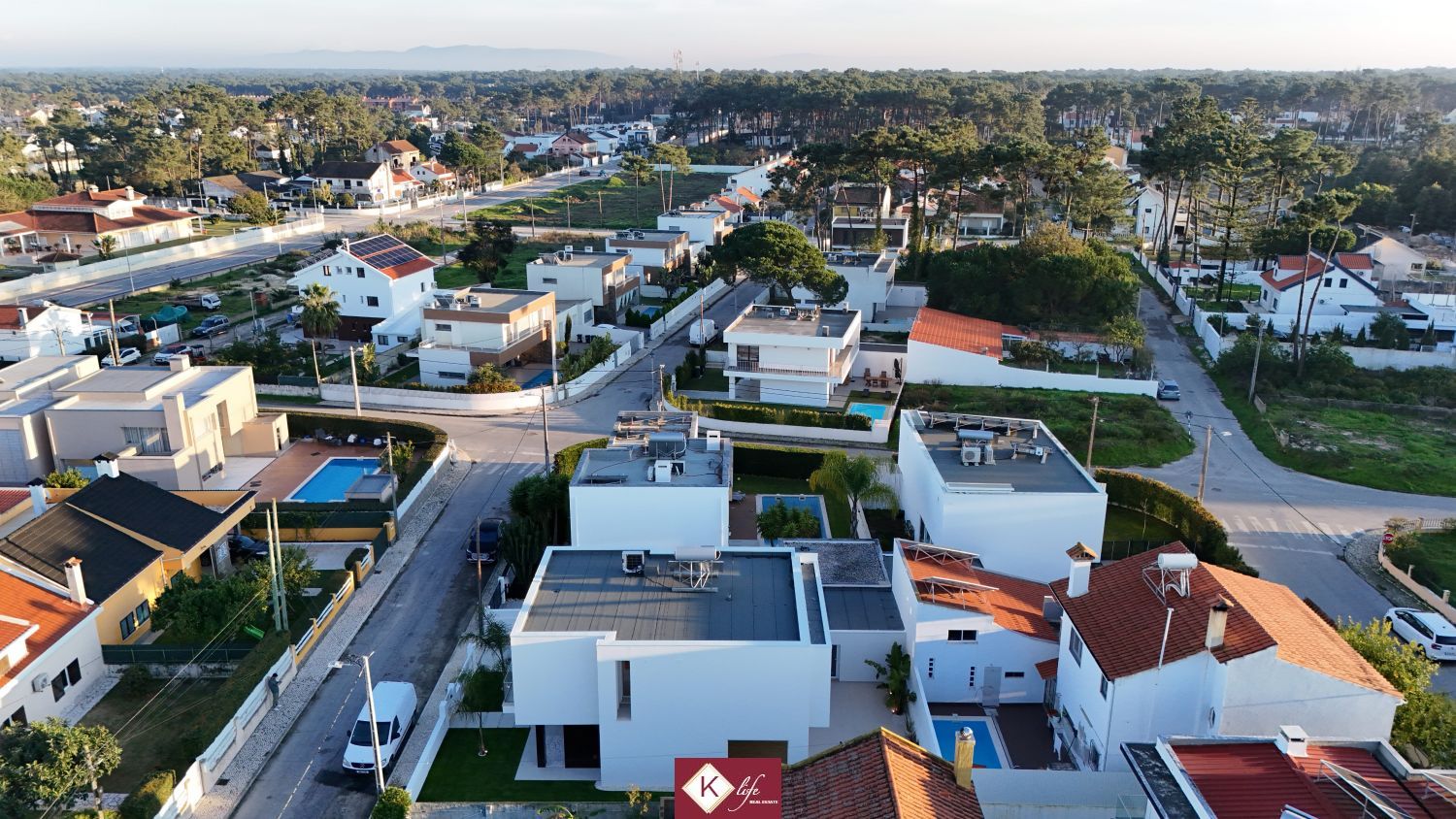 72, SENA VILLA | Aroeira. Com o padrão KLife Properties. Apresentamos Moradia em zona nobre da Aroeira, inserida em lote de 325m2, a apenas 1500m da Herdade da Aroeira (golfe) Possui 201m2 de construção, orientação Nascente/Poente/Sul, desenvolvidos da seguinte forma: - piso 0: cozinha, sala de jantar e sala de estar (open space com 55m2) com janelas grandes para entrada de luz franca e virada para o alpendre e piscina, wc social com duche, quarto e espaço para arrumos e garagem (20m2). - piso 1: 1 master suite (closet + casa de banho + quarto), 2 quartos (15m2 cada) com roupeiros embutidos, lacados e forrados a linho, wc social Equipamentos: - Cozinha equipada totalmente, bancadas dekton; - Ventilação mecânica controlada (VMC); - aspiração central; - ar condicionado completo; - caixilharia de vidro duplo com corte térmico e acústico; - estores elétricos, com botão geral na entrada da habitação; - porta blindada; - portões automáticos; - relva natural com sistema rega automática; - piscina 5x2.5m, tela texturada premium cor pedra natural travertino, regulador automático água, equipamento sal + Ph automático. Na Aroeira situa-se um dos mais glamorosos campos de Golf de Lisboa, perto da praia da Fonte da Telha, perto da mata Nacional dos Medos, A informação disponibilizada, ainda que precisa, não dispensa a sua confirmação nem pode ser considerada vinculativa