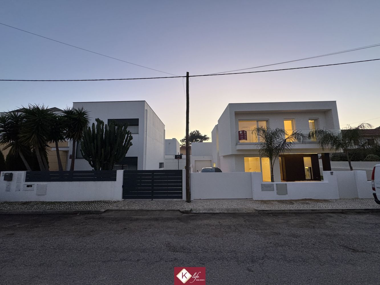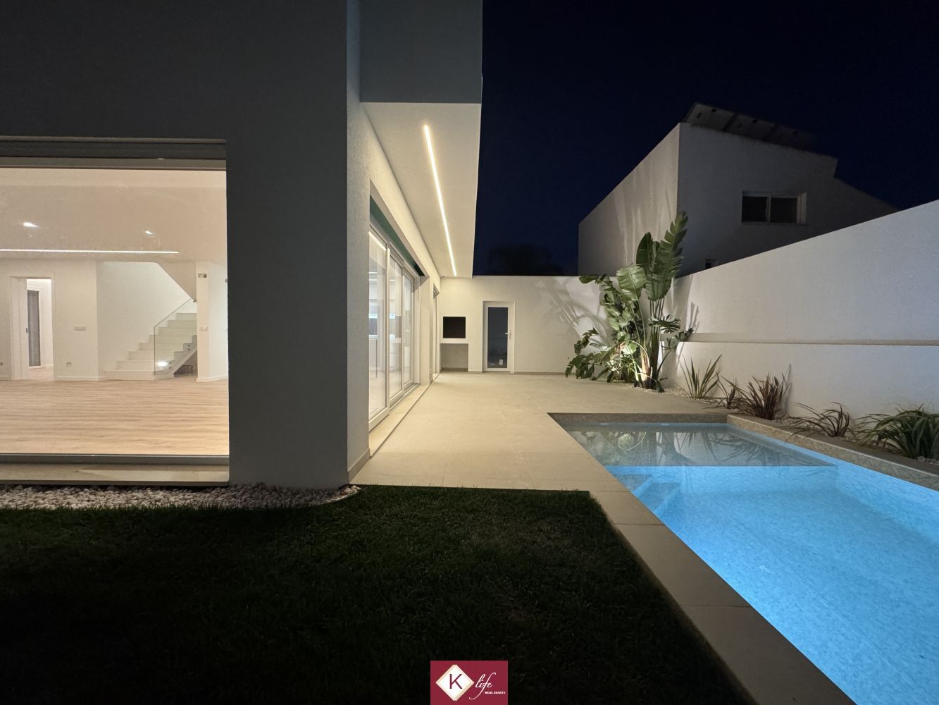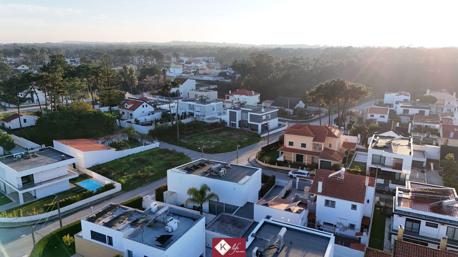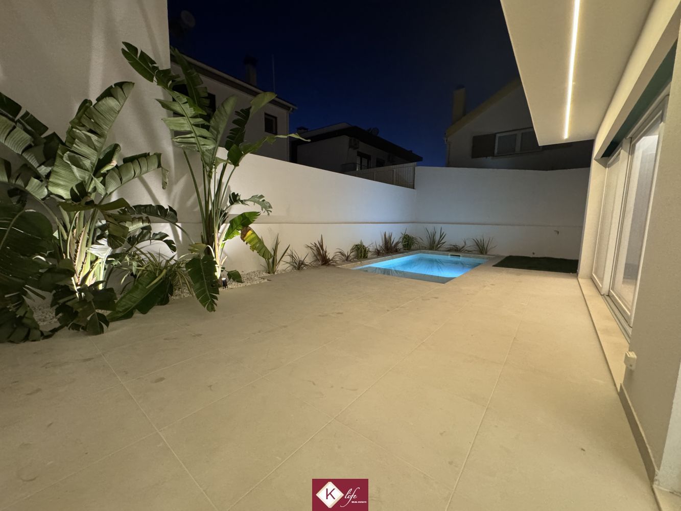 72, SENA VILLA | Aroeira. Com o padrão KLife Properties. Apresentamos Moradia em zona nobre da Aroeira, inserida em lote de 325m2, a apenas 1500m da Herdade da Aroeira (golfe) Possui 201m2 de construção, orientação Nascente/Poente/Sul, desenvolvidos da seguinte forma: - piso 0: cozinha, sala de jantar e sala de estar (open space com 55m2) com janelas grandes para entrada de luz franca e virada para o alpendre e piscina, wc social com duche, quarto e espaço para arrumos e garagem (20m2). - piso 1: 1 master suite (closet + casa de banho + quarto), 2 quartos (15m2 cada) com roupeiros embutidos, lacados e forrados a linho, wc social Equipamentos: - Cozinha equipada totalmente, bancadas dekton; - Ventilação mecânica controlada (VMC); - aspiração central; - ar condicionado completo; - caixilharia de vidro duplo com corte térmico e acústico; - estores elétricos, com botão geral na entrada da habitação; - porta blindada; - portões automáticos; - relva natural com sistema rega automática; - piscina 5x2.5m, tela texturada premium cor pedra natural travertino, regulador automático água, equipamento sal + Ph automático. Na Aroeira situa-se um dos mais glamorosos campos de Golf de Lisboa, perto da praia da Fonte da Telha, perto da mata Nacional dos Medos, A informação disponibilizada, ainda que precisa, não dispensa a sua confirmação nem pode ser considerada vinculativa