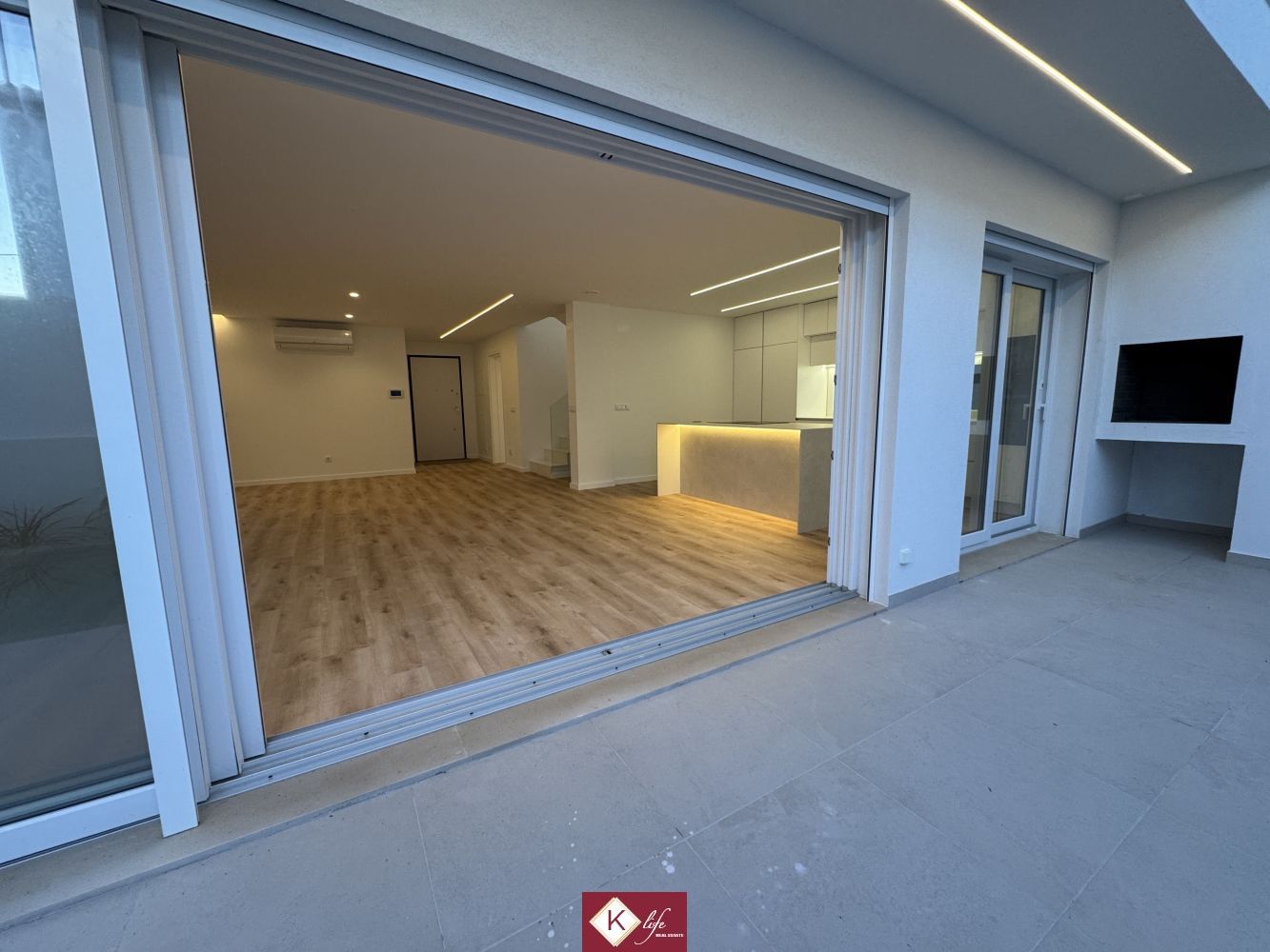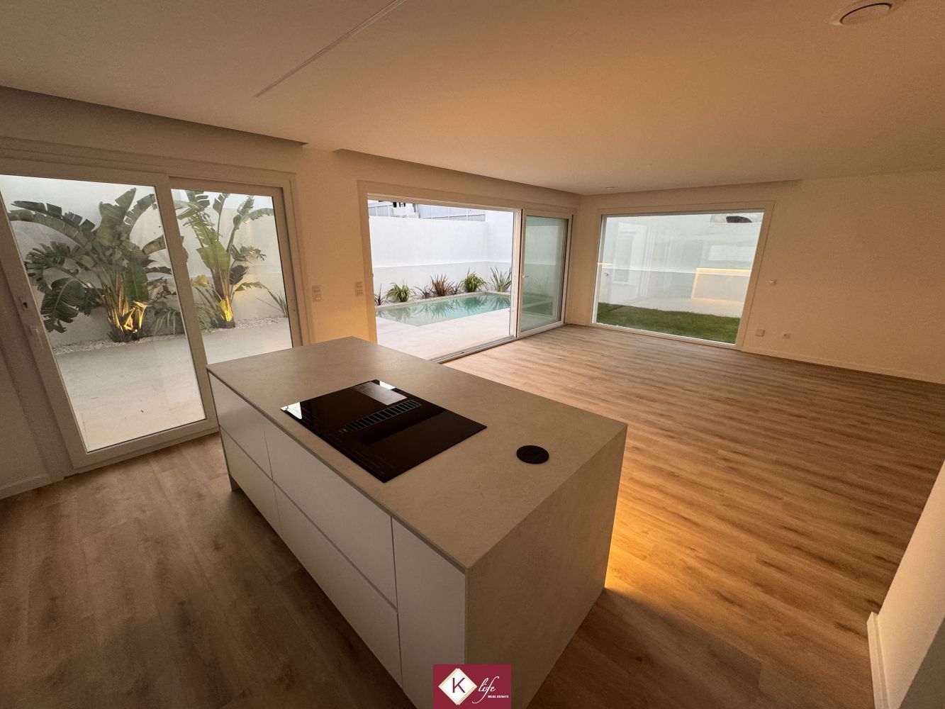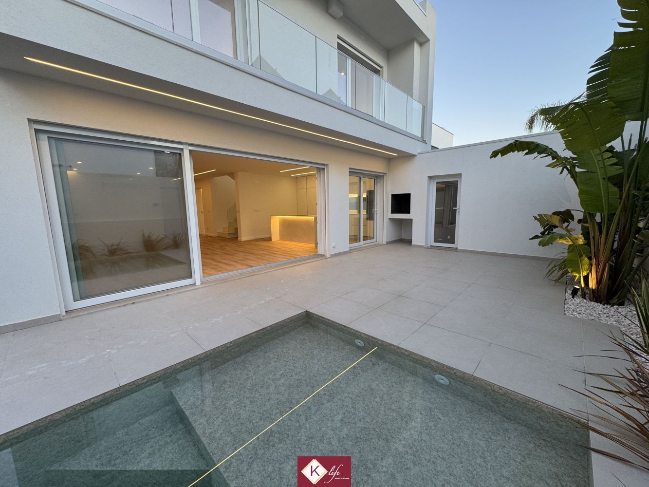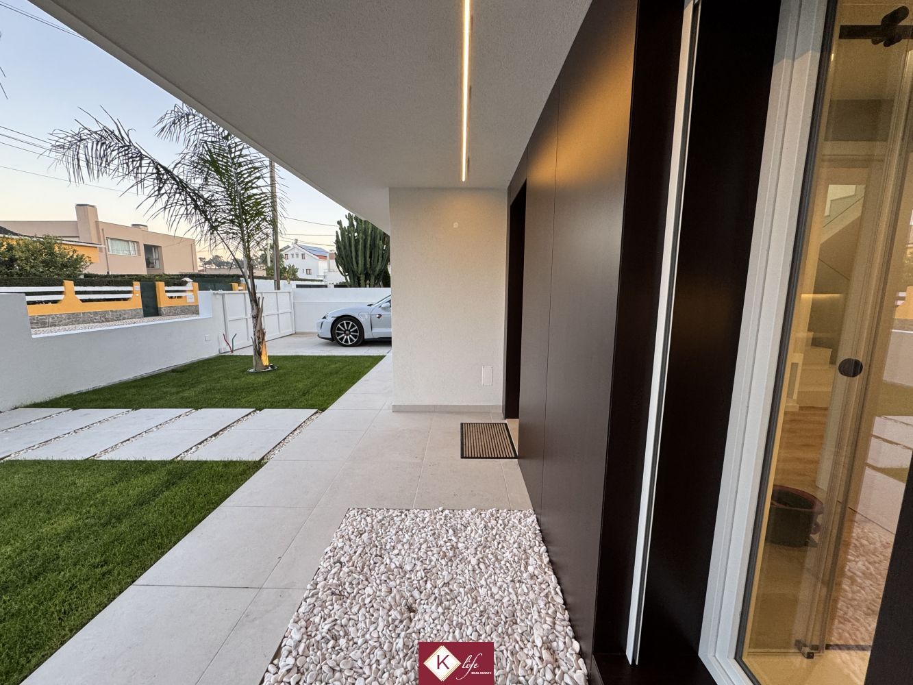 72, SENA VILLA | Aroeira. Com o padrão KLife Properties. Apresentamos Moradia em zona nobre da Aroeira, inserida em lote de 325m2, a apenas 1500m da Herdade da Aroeira (golfe) Possui 201m2 de construção, orientação Nascente/Poente/Sul, desenvolvidos da seguinte forma: - piso 0: cozinha, sala de jantar e sala de estar (open space com 55m2) com janelas grandes para entrada de luz franca e virada para o alpendre e piscina, wc social com duche, quarto e espaço para arrumos e garagem (20m2). - piso 1: 1 master suite (closet + casa de banho + quarto), 2 quartos (15m2 cada) com roupeiros embutidos, lacados e forrados a linho, wc social Equipamentos: - Cozinha equipada totalmente, bancadas dekton; - Ventilação mecânica controlada (VMC); - aspiração central; - ar condicionado completo; - caixilharia de vidro duplo com corte térmico e acústico; - estores elétricos, com botão geral na entrada da habitação; - porta blindada; - portões automáticos; - relva natural com sistema rega automática; - piscina 5x2.5m, tela texturada premium cor pedra natural travertino, regulador automático água, equipamento sal + Ph automático. Na Aroeira situa-se um dos mais glamorosos campos de Golf de Lisboa, perto da praia da Fonte da Telha, perto da mata Nacional dos Medos, A informação disponibilizada, ainda que precisa, não dispensa a sua confirmação nem pode ser considerada vinculativa