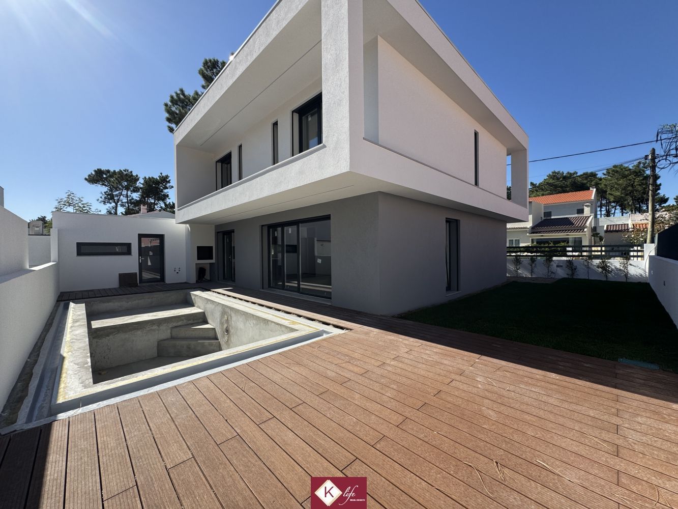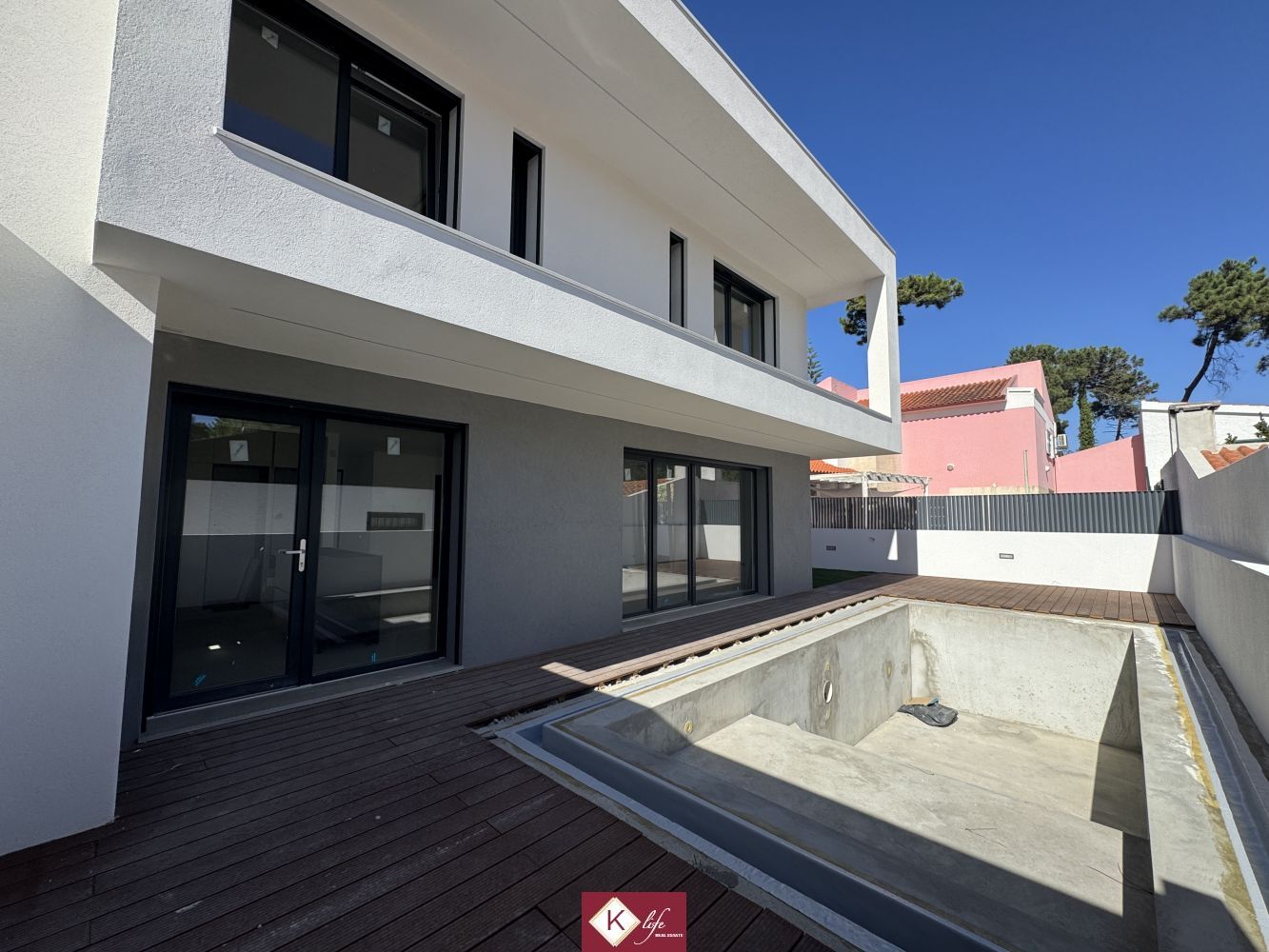 Com o padrão KLife Properties, apresentamos Moradia em zona nobre da Aroeira, V4 (3 suites), inserida em lote de 310m2, a apenas 500m da Herdade da Aroeira (golfe). Possui 180m2 de construção, orientação Sul, desenvolvidos da seguinte forma: - piso 0: cozinha, sala de jantar e sala de estar com janelas grandes para entrada de luz franca e virada para o alpendre e piscina, wc social com duche, quarto e espaço para arrumos e garagem. - piso 1: 1 master suite (closet + casa de banho + quarto) + 2 suites, roupeiros lacados e forrados a linho, wc social Equipamentos: - Cozinha equipada totalmente - VMC; - aspiração central; - ar condicionado completo; - caixilharia de vidro duplo com corte térmico e acústico; - estores elétricos, com botão geral na entrada da habitação; - porta blindada; - portões automáticos; - relva natural com sistema rega automática; - piscina tipo espelho (transbordante a toda a volta) Conclusão obra out2025 Na Aroeira situa-se um dos mais glamorosos campos de Golf de Lisboa, perto da praia da Fonte da Telha, perto da mata Nacional dos Medos. A informação disponibilizada, ainda que precisa, não dispensa a sua confirmação nem pode ser considerada vinculativa