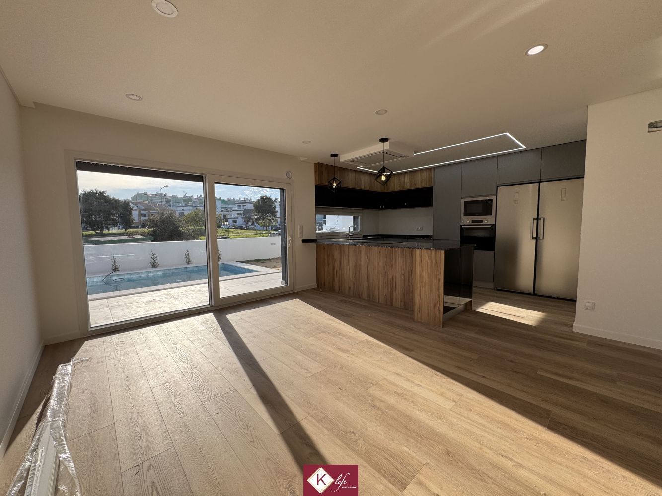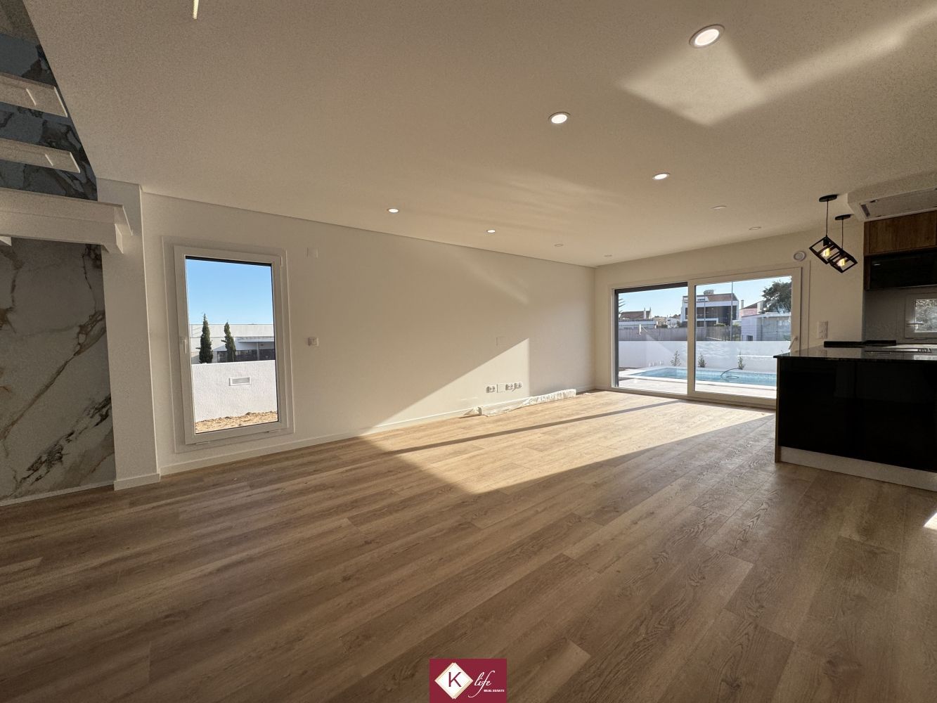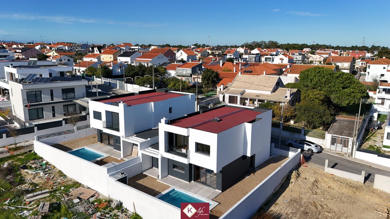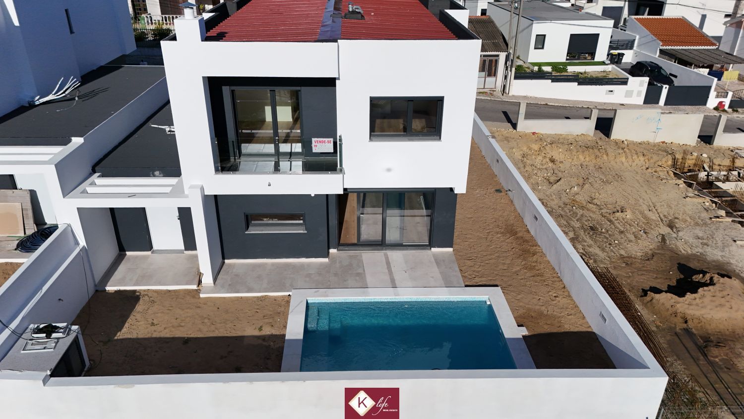 Com o padrão KLife Properties. Apresentamos Moradia em zona nobre da Charneca de Caparica, inserida em lote de 310m2, perto de escolas, serviços e comércio. Possui 190m2 de construção, orientação Poente/Sul, desenvolvidos da seguinte forma: - piso 0: cozinha, sala de jantar e sala de estar com janelas grandes para entrada de luz franca e virada para o alpendre, um quarto, garagem e piscina. - piso 1: 1 suite com closet, 2 quartos e casa de banho social. Moradia totalmente equipada. A informação disponibilizada, ainda que precisa, não dispensa a sua confirmação nem pode ser considerada vinculativa