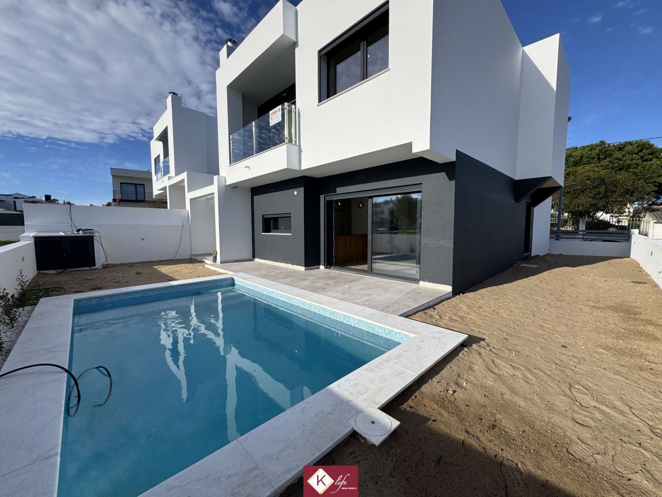 Com o padrão KLife Properties. Apresentamos Moradia em zona nobre da Charneca de Caparica, inserida em lote de 310m2, perto de escolas, serviços e comércio. Possui 190m2 de construção, orientação Poente/Sul, desenvolvidos da seguinte forma: - piso 0: cozinha, sala de jantar e sala de estar com janelas grandes para entrada de luz franca e virada para o alpendre, um quarto, garagem e piscina. - piso 1: 1 suite com closet, 2 quartos e casa de banho social. Moradia totalmente equipada. A informação disponibilizada, ainda que precisa, não dispensa a sua confirmação nem pode ser considerada vinculativa.