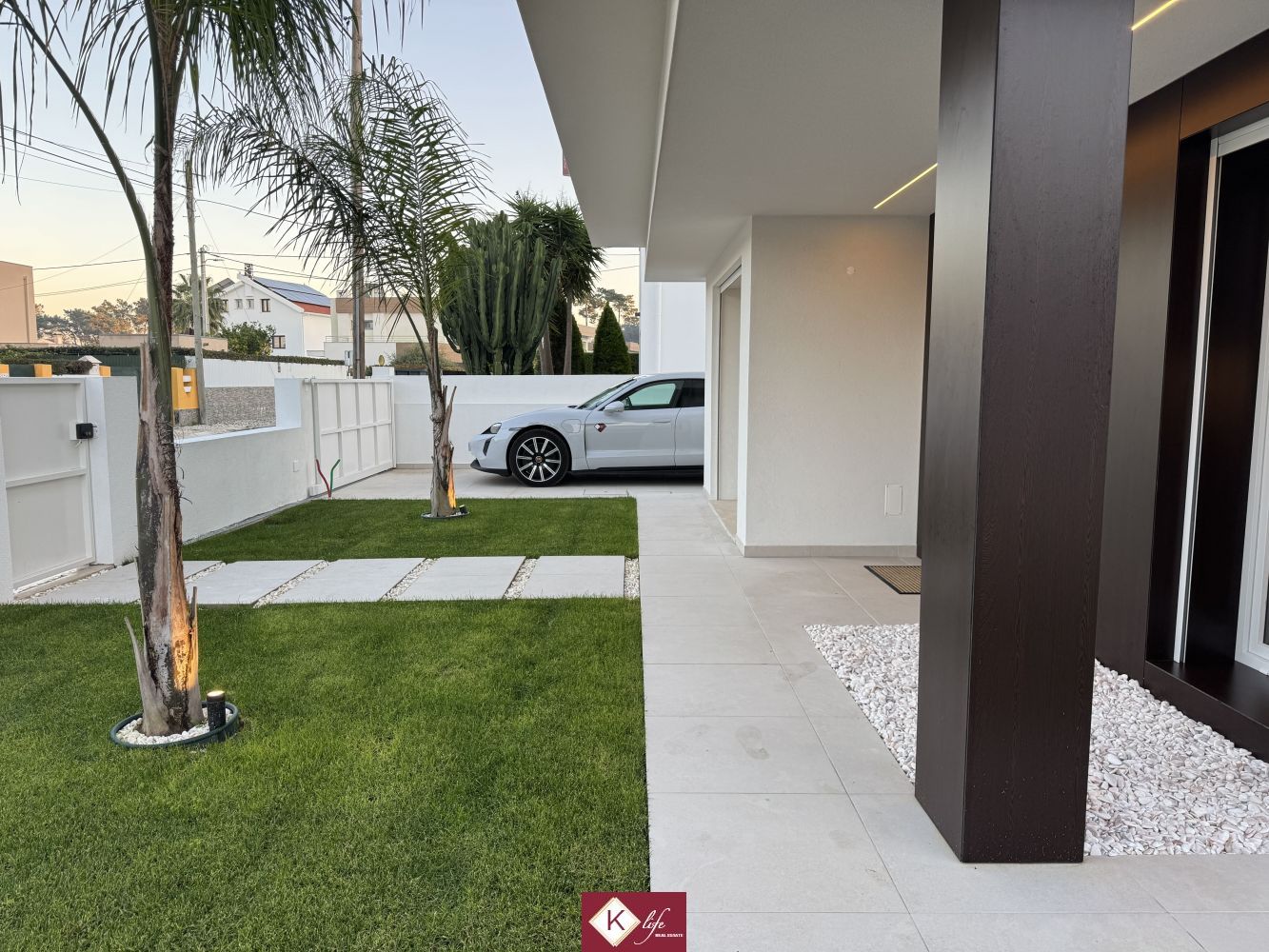 A apenas 500m da Herdade da Aroeira (PGA golfe). 72, SENA RESIDENCE | Aroeira. Com o padrão KLife Properties. Apresentamos Moradia em zona nobre da Aroeira, inserida em lote de 325m2. Possui 201m2 de construção, orientação Nascente/Poente/Sul, desenvolvidos da seguinte forma: - piso 0: cozinha, sala de jantar e sala de estar (open space com 55m2) com janelas grandes para entrada de luz franca e virada para o alpendre e piscina, wc social com duche, quarto e espaço para arrumos e garagem (20m2). - piso 1: 1 master suite (closet + casa de banho + quarto), 2 quartos (15m2 cada) com roupeiros embutidos, lacados e forrados a linho, wc social Equipamentos: - Cozinha equipada totalmente, bancadas dekton; - Ventilação mecânica controlada (VMC); - aspiração central; - ar condicionado completo; - caixilharia de vidro duplo com corte térmico e acústico; - estores elétricos, com botão geral na entrada da habitação; - porta blindada; - portões automáticos; - relva natural com sistema rega automática; - piscina 5x2.5m, tela texturada premium cor pedra natural travertino, regulador automático água, equipamento sal + Ph automático. Na Aroeira situa-se um dos mais glamorosos campos de Golf de Lisboa, perto da praia da Fonte da Telha, perto da mata Nacional dos Medos, A informação disponibilizada, ainda que precisa, não dispensa a sua confirmação nem pode ser considerada vinculativa