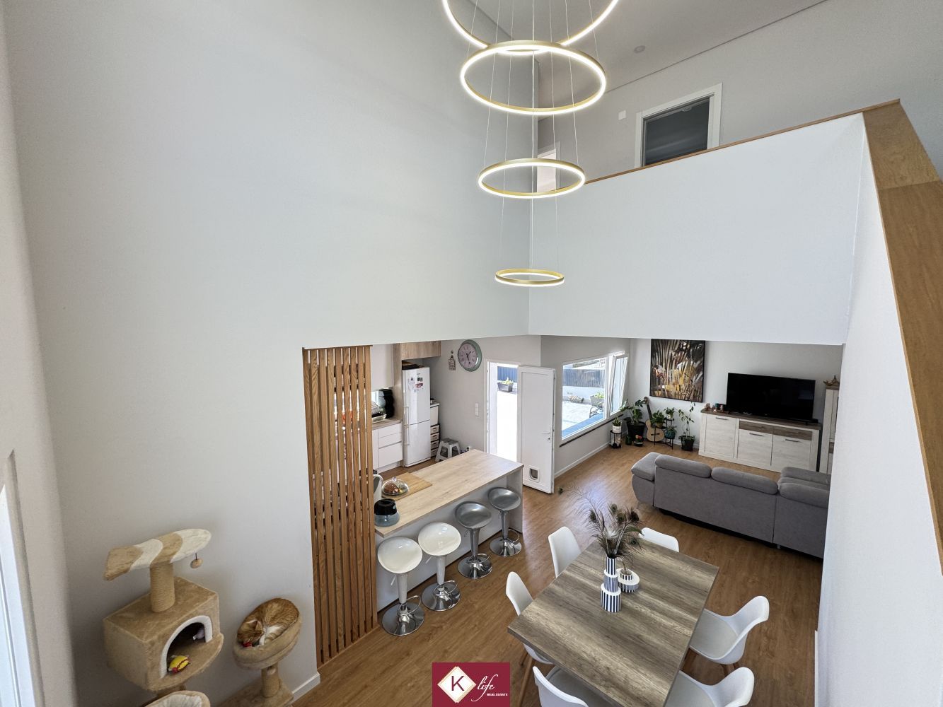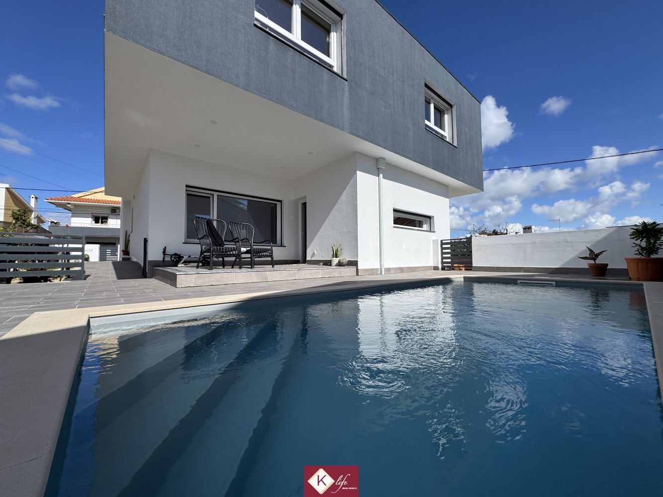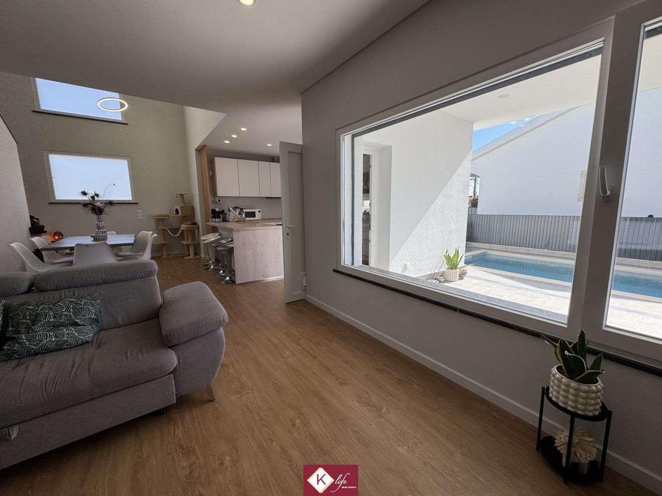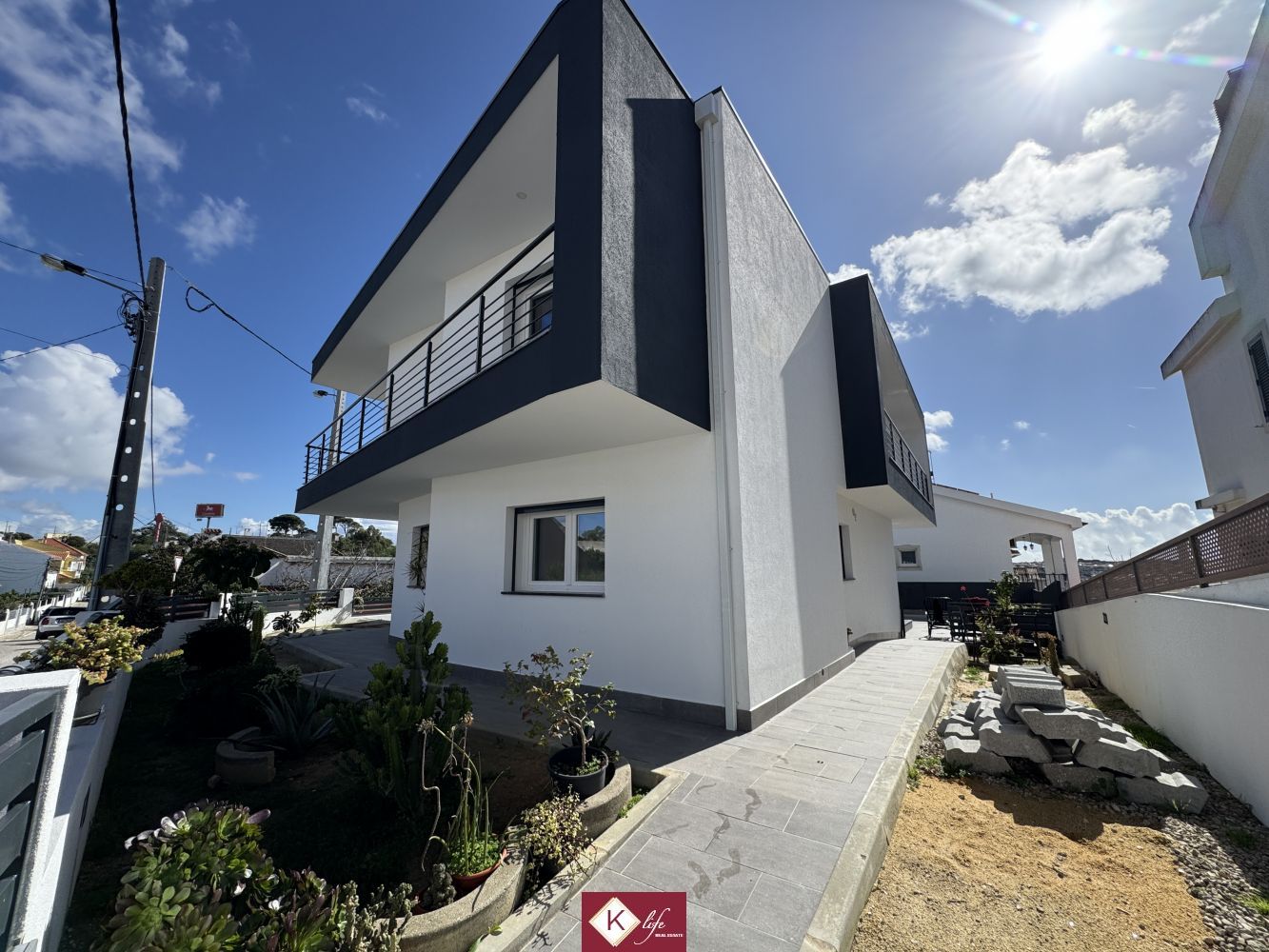 Com o padrão Klife, apresentamos Moradia em zona nobre da Sobreda, inserida em lote de 340m2. Possui 305m2 de construção distribuídos por 3 pisos, orientação Nascente/Poente/Sul, desenvolvidos da seguinte forma: -Cave: Garagem com 62m2, lavandaria e 2 espaços para arrumos. - piso 0: cozinha, sala de jantar e sala de estar com cerca de 45m2, com janelas grandes para entrada de luz franca e virada para o alpendre e piscina, wc social com duche, 2 quartos, roupeiros, espaço para arrumos. - piso 1: 1 suite, 2 quartos com roupeiros embutidos, wc social, varandas, onde uma delas encontra-se preparada para funcionar como lavandaria se pretender. Cozinha equipada totalmente com eletrodomésticos, aspiração central, ar condicionado, caixilharia de vidro duplo com corte térmico e acústico, estores elétricos, porta blindada, portões automáticos. Ótimo acessos e serviços. Na "K Life" efetuamos o acompanhamento de todas as fases da obra, assim como visita a obras atuais para ter uma melhor perceção da evolução do projeto e verificação de acabamentos. Também efetuamos consultoria dos materiais a usar, desenhos 3D de interiores e de mobiliário. A informação disponibilizada, ainda que precisa, não dispensa a sua confirmação nem pode ser considerada vinculativa