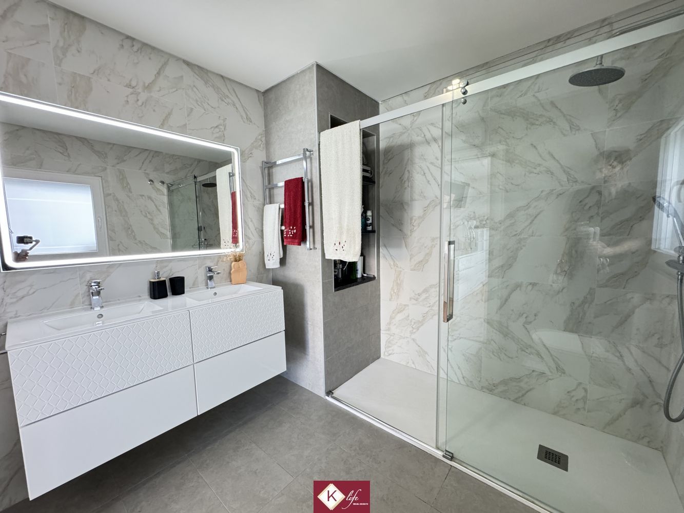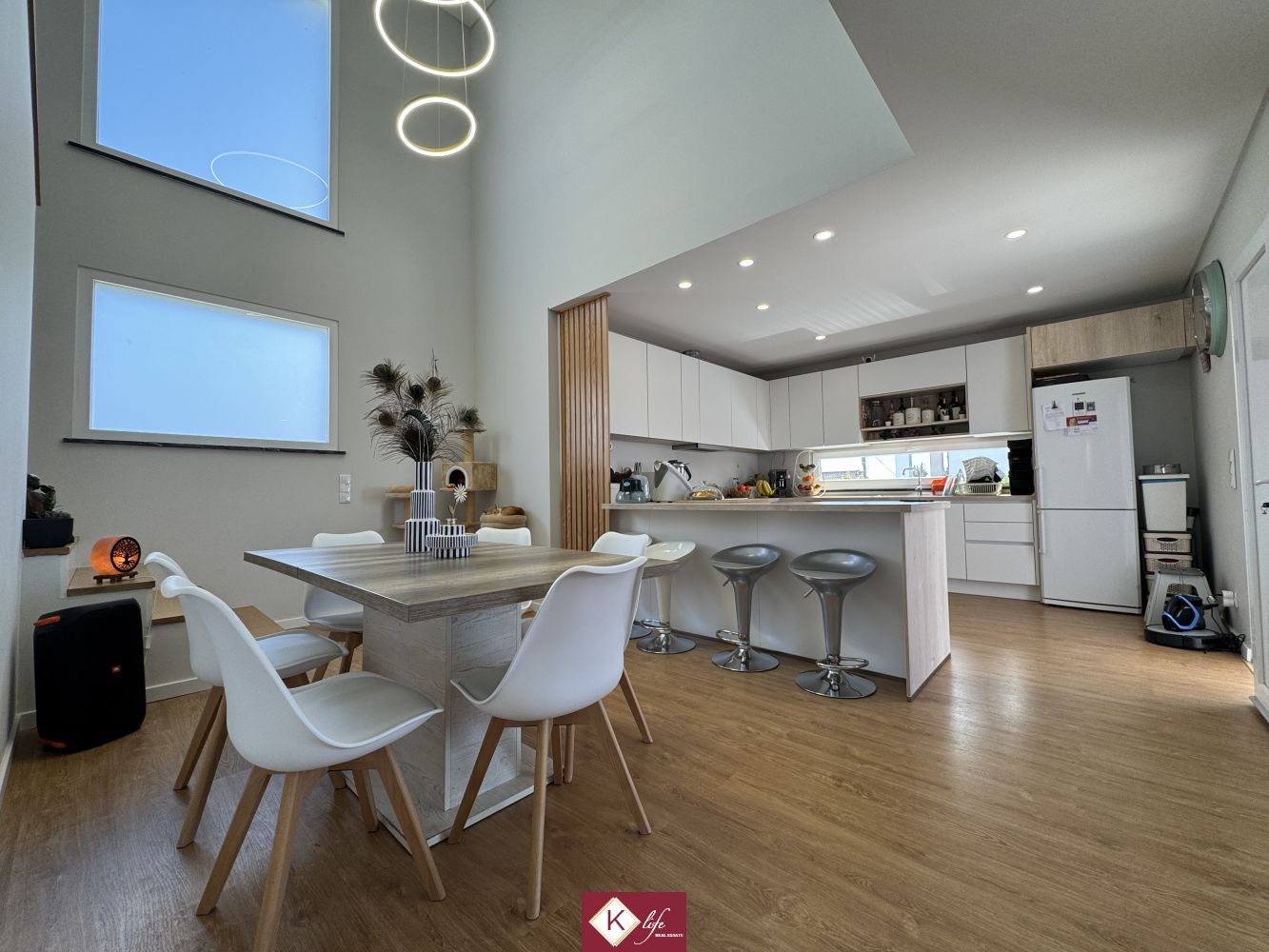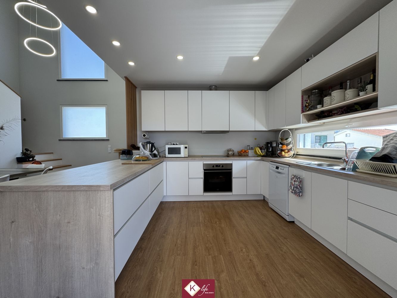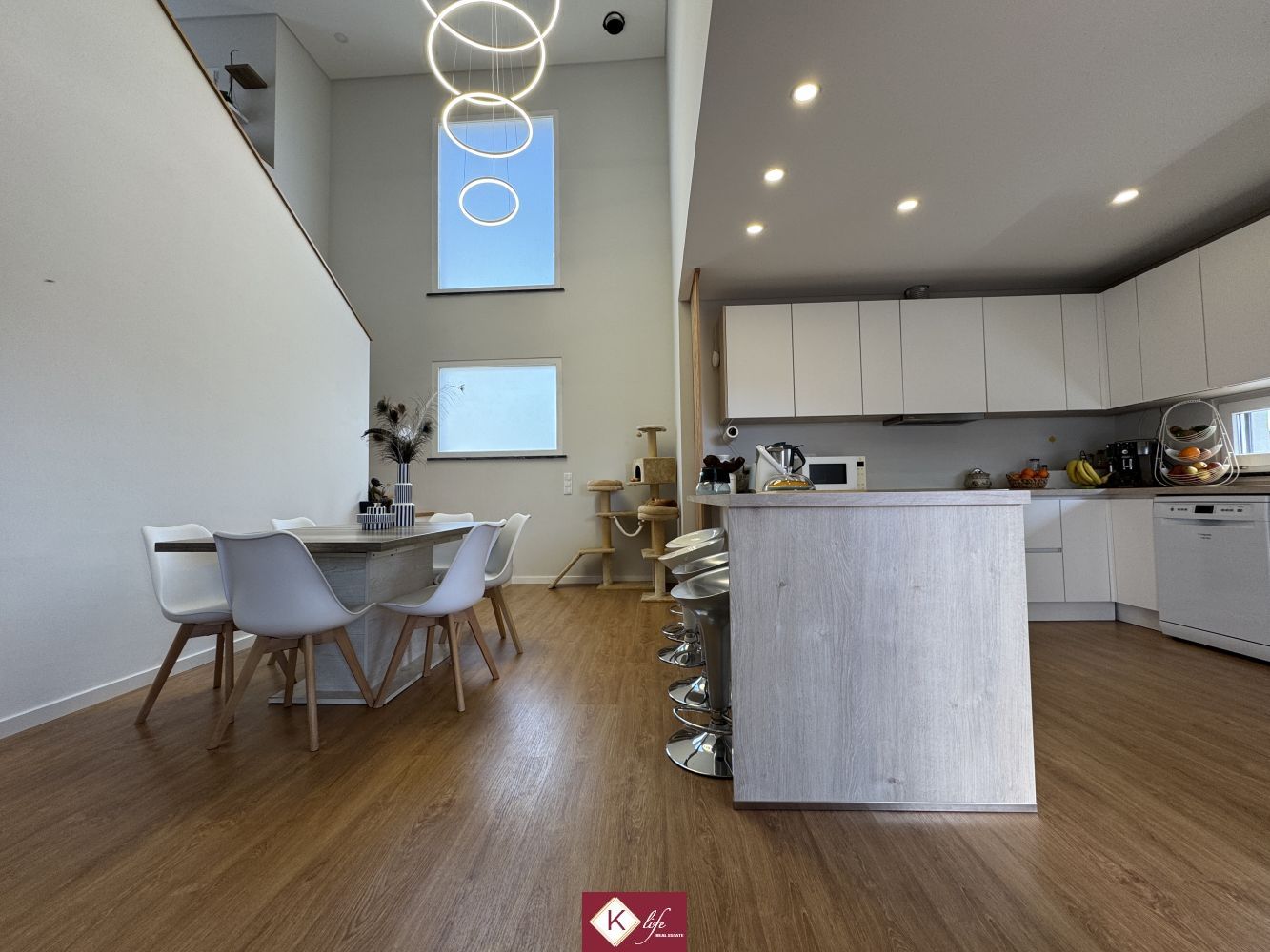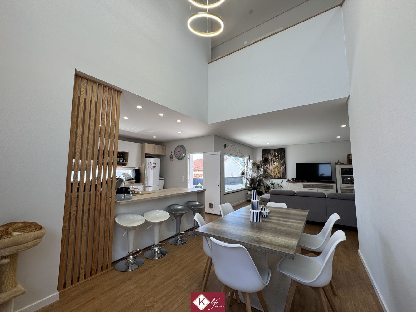 Com o padrão Klife, apresentamos Moradia em zona nobre da Sobreda, inserida em lote de 340m2. Possui 305m2 de construção distribuídos por 3 pisos, orientação Nascente/Poente/Sul, desenvolvidos da seguinte forma: -Cave: Garagem com 62m2, lavandaria e 2 espaços para arrumos. - piso 0: cozinha, sala de jantar e sala de estar com cerca de 45m2, com janelas grandes para entrada de luz franca e virada para o alpendre e piscina, wc social com duche, 2 quartos, roupeiros, espaço para arrumos. - piso 1: 1 suite, 2 quartos com roupeiros embutidos, wc social, varandas, onde uma delas encontra-se preparada para funcionar como lavandaria se pretender. Cozinha equipada totalmente com eletrodomésticos, aspiração central, ar condicionado, caixilharia de vidro duplo com corte térmico e acústico, estores elétricos, porta blindada, portões automáticos. Ótimo acessos e serviços. Na "K Life" efetuamos o acompanhamento de todas as fases da obra, assim como visita a obras atuais para ter uma melhor perceção da evolução do projeto e verificação de acabamentos. Também efetuamos consultoria dos materiais a usar, desenhos 3D de interiores e de mobiliário. A informação disponibilizada, ainda que precisa, não dispensa a sua confirmação nem pode ser considerada vinculativa