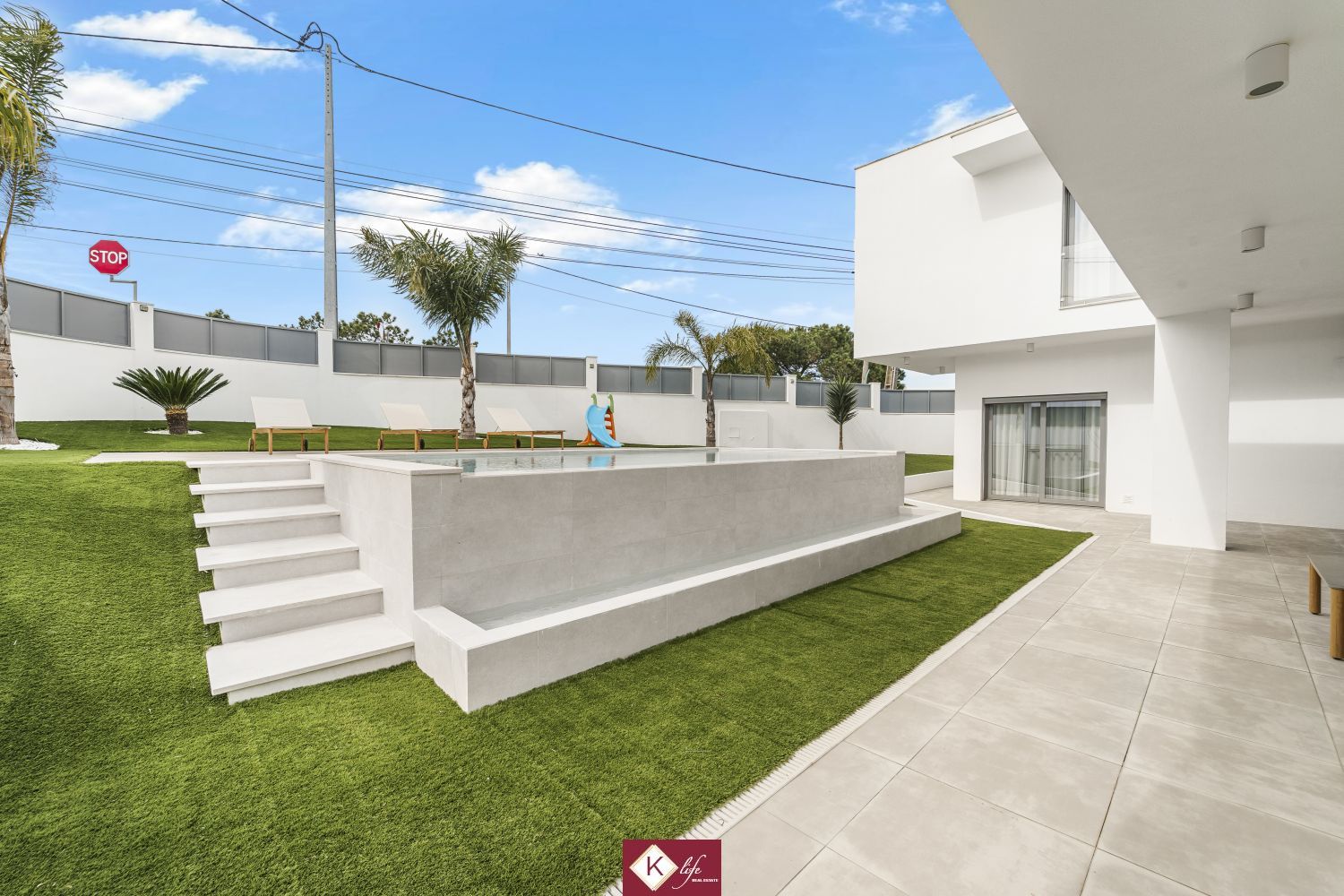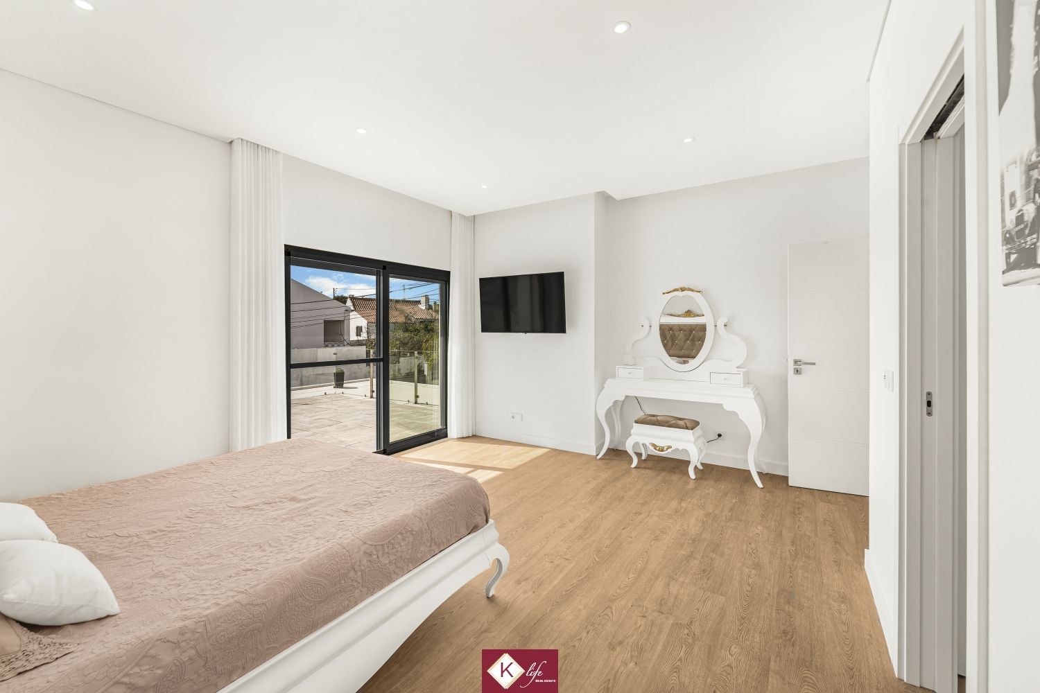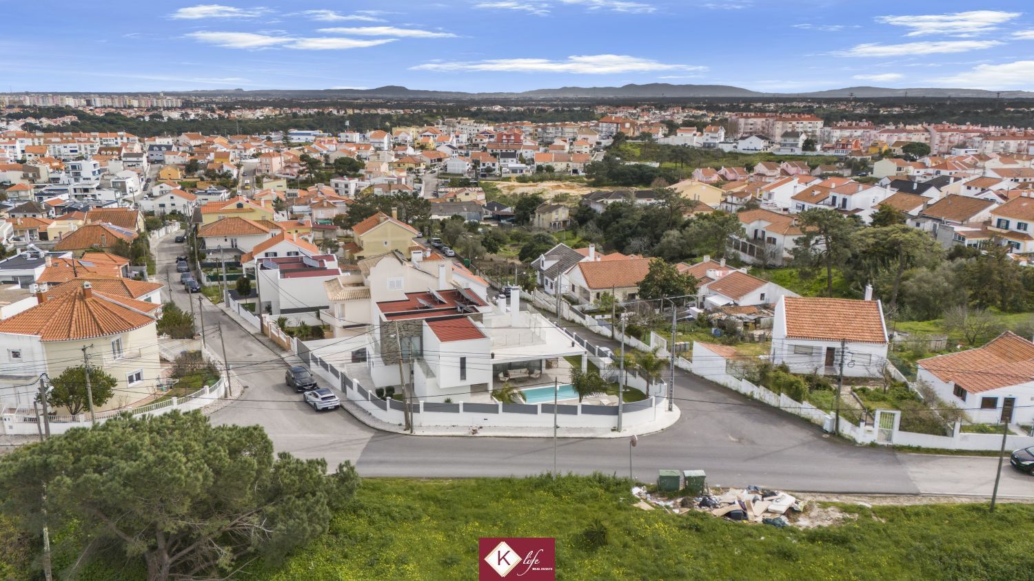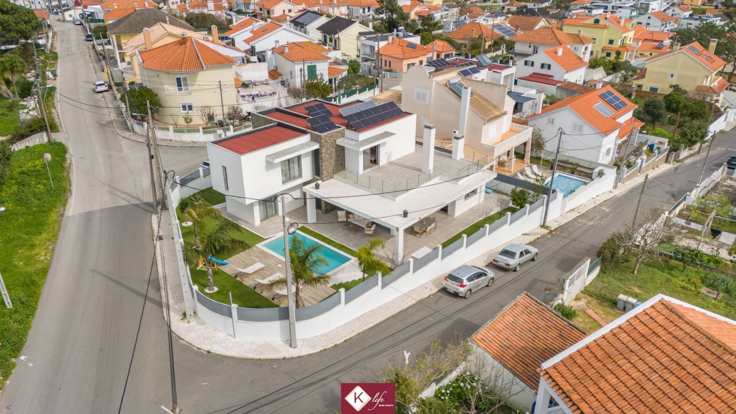 4 suites (v5) | 343m2 Abc | lote 716m2. Com o padrão KLife Properties, apresentamos Moradia em Vale Rosal. - Piso 0: Sala 57m2 Cozinha 30m2, com recuperador duplo para a sala, acesso exterior e piscina e totalmente equipada. Suite Quarto/escritório 16m2 Casa de banho social Garagem fechada com 46m2, ideal para 2 viaturas + arrumos, sala de jogos ou ginásio por exemplo. Parqueamento exterior para 2 viaturas adicionais. Lavandaria Porta entrada principal pivetante Piso 1: 3 suites, a master com 40m2 e walking closet Terraço privativo de 50m2 com vista para a Arrábida Equipamentos: Piscina aquecida Pavimento radiante nas casas de banho Ar condicionados Daikin Alarme Painéis Solares fotovoltaicos Painéis Solares aquecimentos águas Sistema vigilância exterior - 1 min da A33 - 5 min da Ponte 25 de Abril - 20min de Lisboa Absoluta privacidade em todo o perímetro da moradia. A informação disponibilizada, ainda que precisa, não dispensa a sua confirmação nem pode ser considerada vinculativa