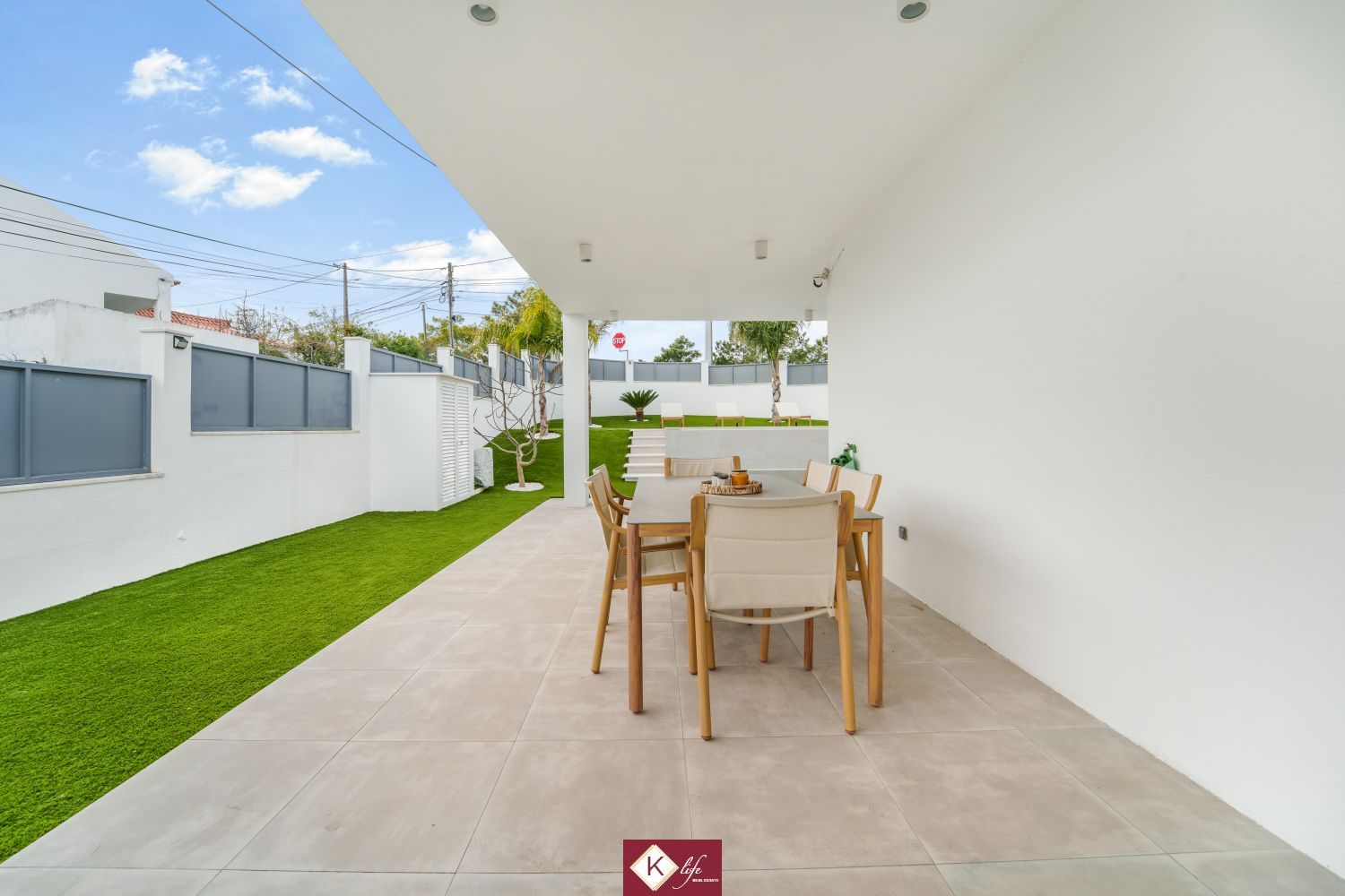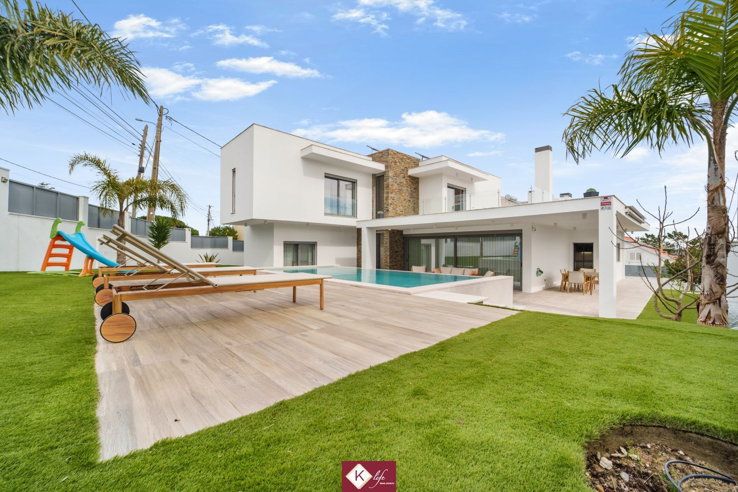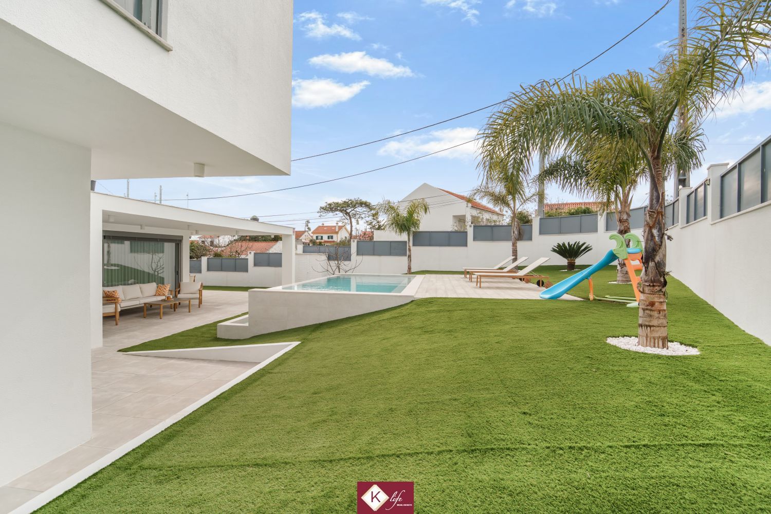 4 suites (v5) | 343m2 Abc | lote 716m2. Com o padrão KLife Properties, apresentamos Moradia em Vale Rosal. - Piso 0: Sala 57m2 Cozinha 30m2, com recuperador duplo para a sala, acesso exterior e piscina e totalmente equipada. Suite Quarto/escritório 16m2 Casa de banho social Garagem fechada com 46m2, ideal para 2 viaturas + arrumos, sala de jogos ou ginásio por exemplo. Parqueamento exterior para 2 viaturas adicionais. Lavandaria Porta entrada principal pivetante Piso 1: 3 suites, a master com 40m2 e walking closet Terraço privativo de 50m2 com vista para a Arrábida Equipamentos: Piscina aquecida Pavimento radiante nas casas de banho Ar condicionados Daikin Alarme Painéis Solares fotovoltaicos Painéis Solares aquecimentos águas Sistema vigilância exterior - 1 min da A33 - 5 min da Ponte 25 de Abril - 20min de Lisboa Absoluta privacidade em todo o perímetro da moradia. A informação disponibilizada, ainda que precisa, não dispensa a sua confirmação nem pode ser considerada vinculativa