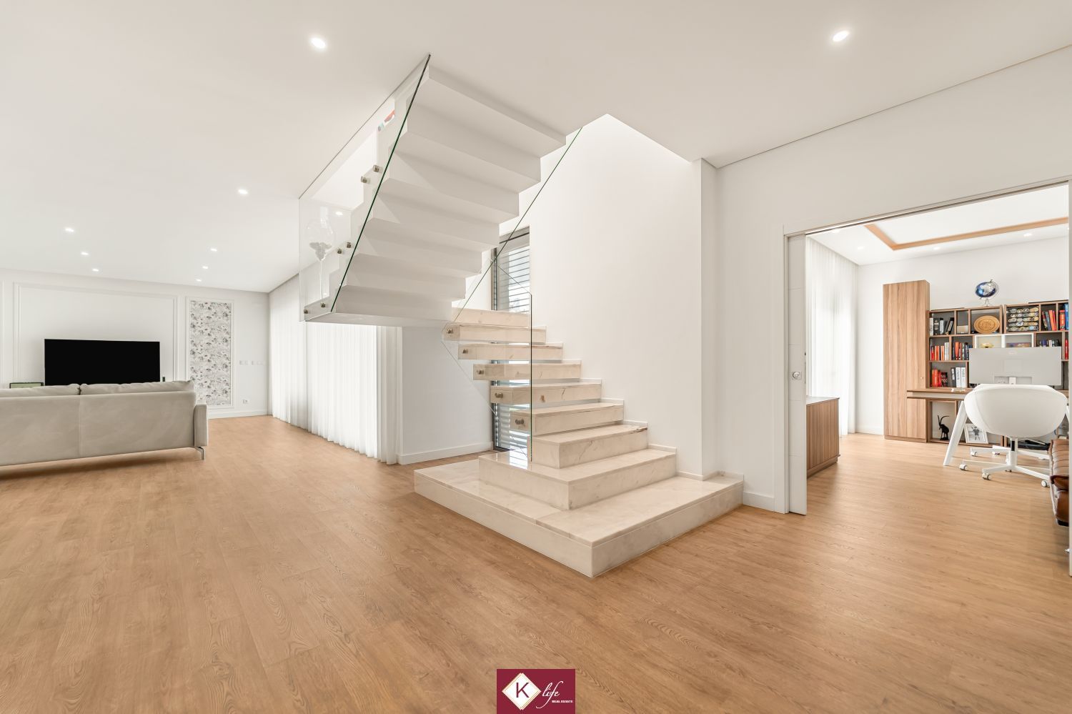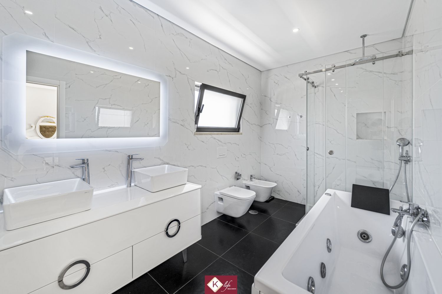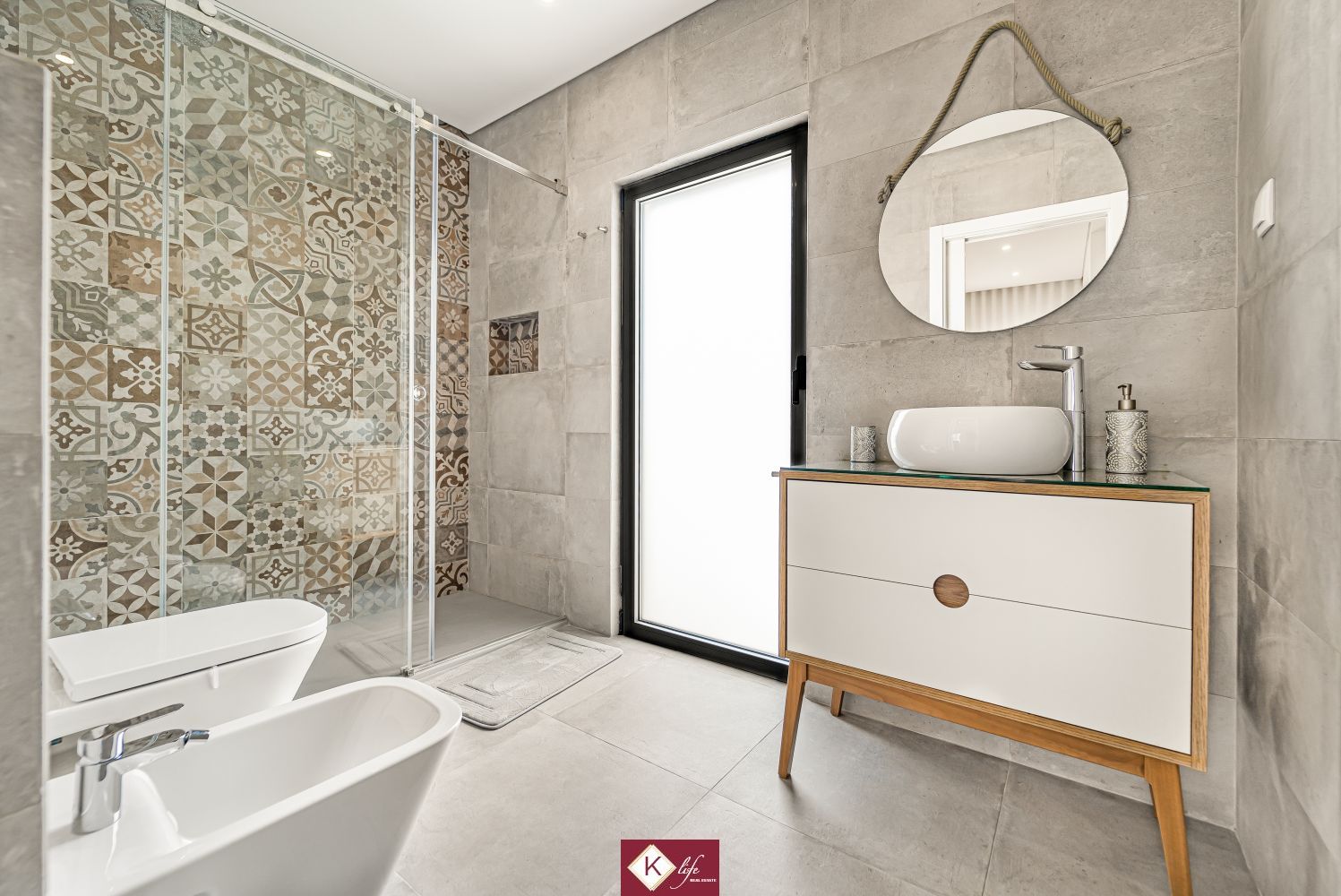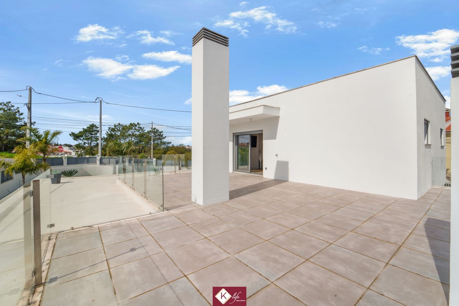 4 suites (v5) | 343m2 Abc | lote 716m2. Com o padrão KLife Properties, apresentamos Moradia em Vale Rosal. - Piso 0: Sala 57m2 Cozinha 30m2, com recuperador duplo para a sala, acesso exterior e piscina e totalmente equipada. Suite Quarto/escritório 16m2 Casa de banho social Garagem fechada com 46m2, ideal para 2 viaturas + arrumos, sala de jogos ou ginásio por exemplo. Parqueamento exterior para 2 viaturas adicionais. Lavandaria Porta entrada principal pivetante Piso 1: 3 suites, a master com 40m2 e walking closet Terraço privativo de 50m2 com vista para a Arrábida Equipamentos: Piscina aquecida Pavimento radiante nas casas de banho Ar condicionados Daikin Alarme Painéis Solares fotovoltaicos Painéis Solares aquecimentos águas Sistema vigilância exterior - 1 min da A33 - 5 min da Ponte 25 de Abril - 20min de Lisboa Absoluta privacidade em todo o perímetro da moradia. A informação disponibilizada, ainda que precisa, não dispensa a sua confirmação nem pode ser considerada vinculativa