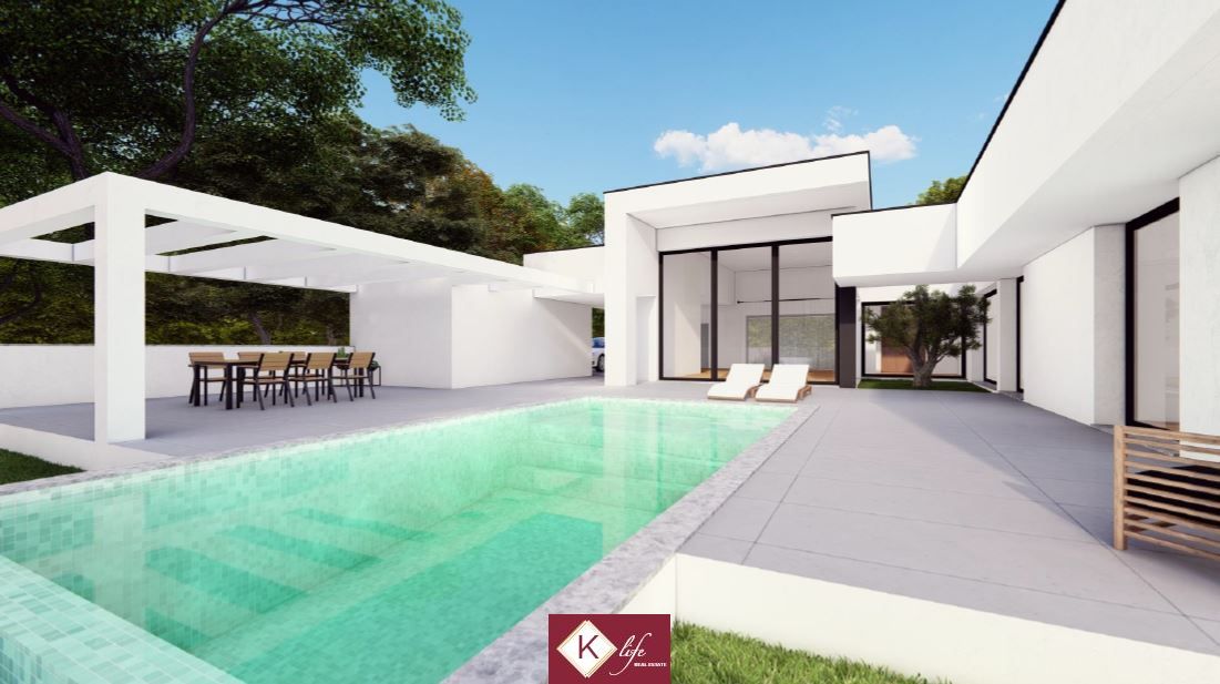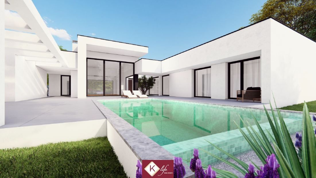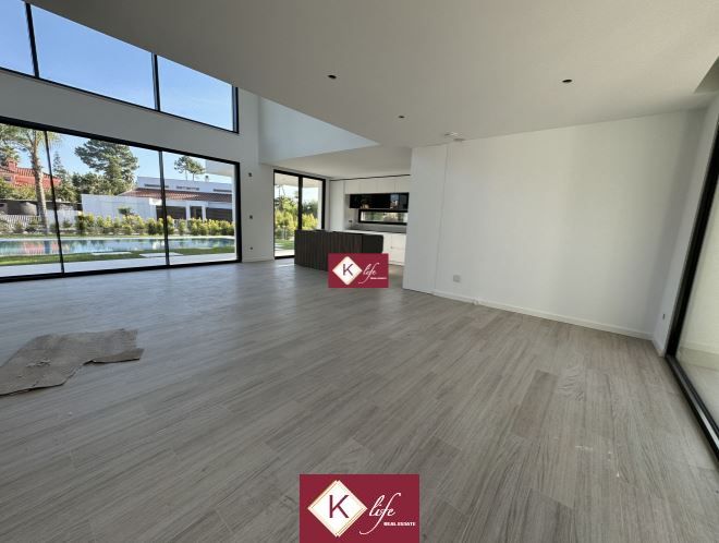Com o padrão KLife Properties. Apresentamos Moradia em zona nobre da Marisol, inserida num lote generoso de 750m2. Possui 270m2 de construção, orientação Sul. 4 suites, sala e cozinha em pé direito de 4m. Cozinha equipada totalmente, aspiração central, ar condicionado, caixilharia de vidro duplo com corte térmico e acústico, estores elétricos porta blindada, portões automáticos, relva natural com sistema rega automático e piscina. A 2 min da A33, a 5 min da Aroeira, onde se situa um dos mais glamorosos campos de Golf de Lisboa. Algumas fotos exemplo do tipo de acabamentos do construtor. Conclusão estimada da obra mar2026. A informação disponibilizada, ainda que precisa, não dispensa a sua confirmação nem pode ser considerada vinculativa